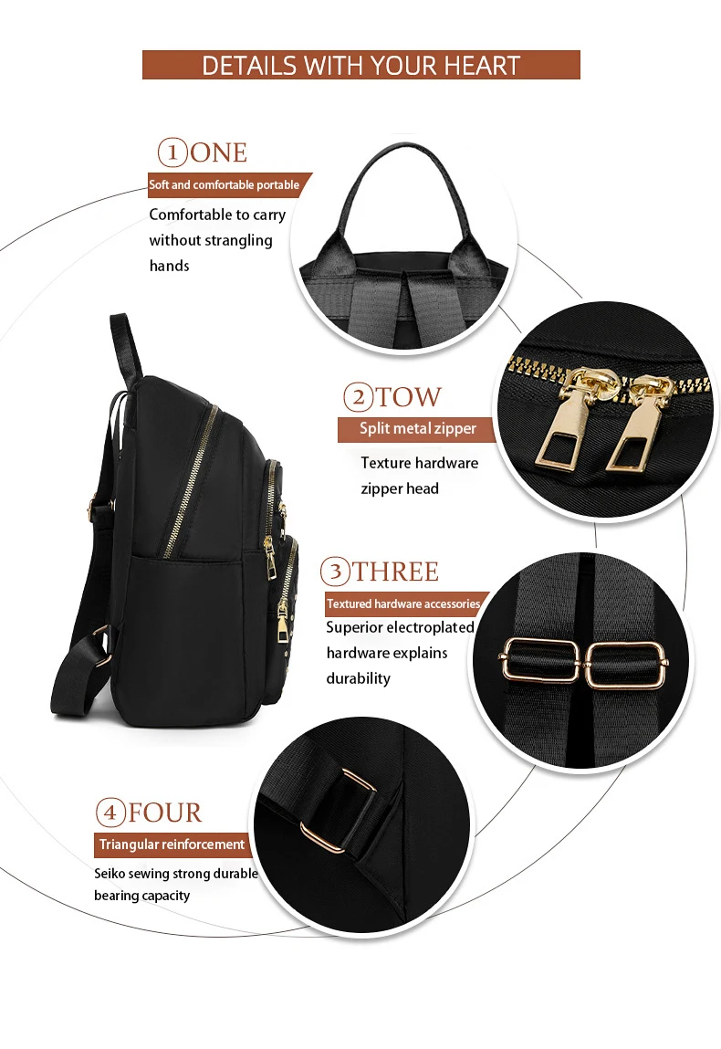 حقيبة ظهر نسائية أنيقة من النايلون عالي الجودة، حقيبة ظهر كبيرة للسفر، حقائب مدرسية كبيرة للفتيات المراهقات، حقيبة كتف