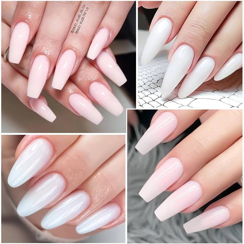 طقم طلاء أظافر 2/3 قطع شفاف أبيض وردي ذهبي لامع سريع البناء جل طلاء أظافر بالأشعة فوق البنفسجية LED غراء أظافر أطراف أظافر طقم تمديد