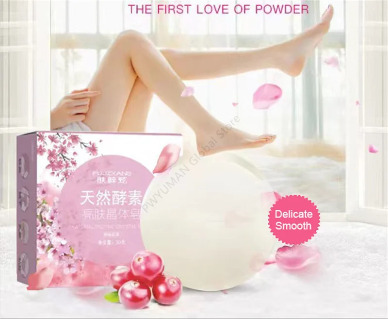 الميزة 2 : صابون كريستالي لتبييض الجسم بإنزيمات طبيعية للعناية بالجسم وتبييض البشرة وتنقيتها وشفافية الاستحمام