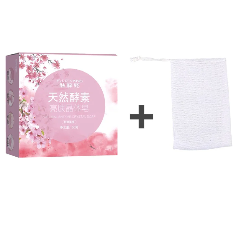 صابون كريستالي طبيعي مفتح بالإنزيم مع شبكة رغوية لتنظيف الجسم والوجه، صابون مصنوع يدويًا بالزيوت العطرية لتفتيح الميلانين، مجموعة العناية بالبشرة الناعمة باللون الوردي 50 جرام