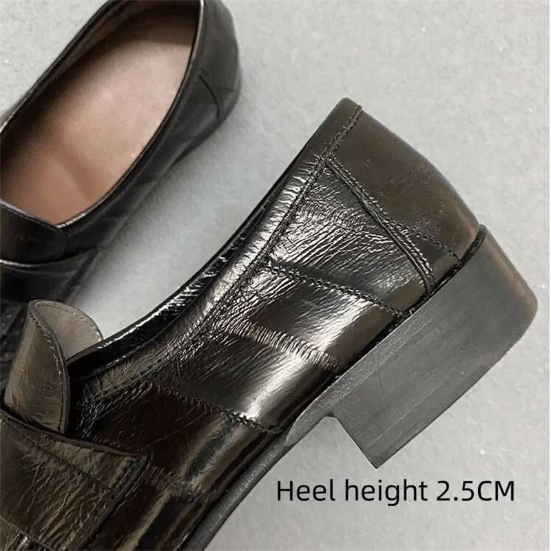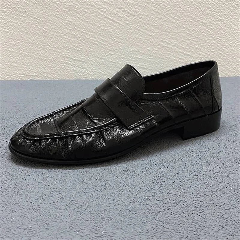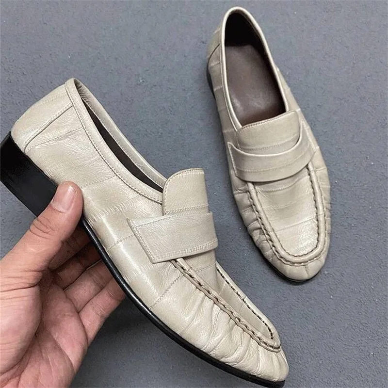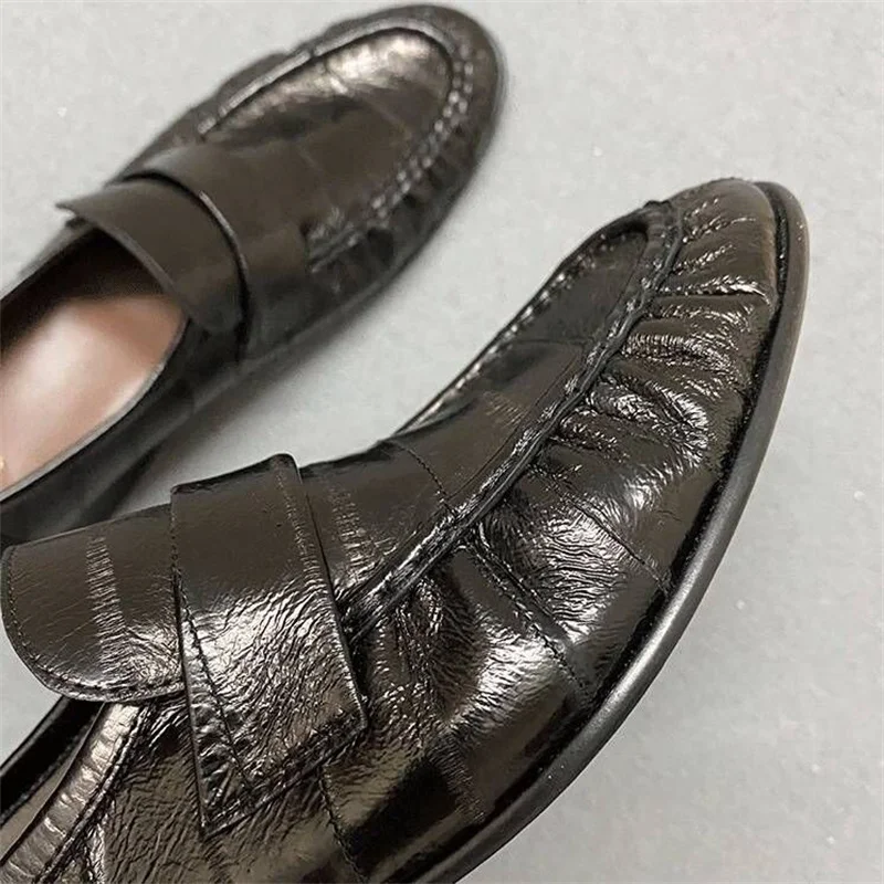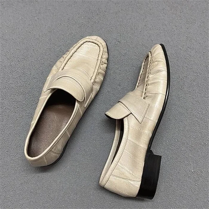 حذاء Lefu نسائي جديد بتصميم كلاسيكي فرنسي بكعب مسطح مصنوع من جلد ثعبان البحر ونعل من الجلد الأصلي مخيط يدويًا ومريح بخطوة واحدة