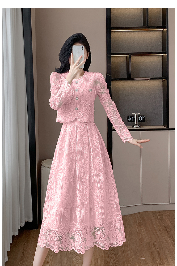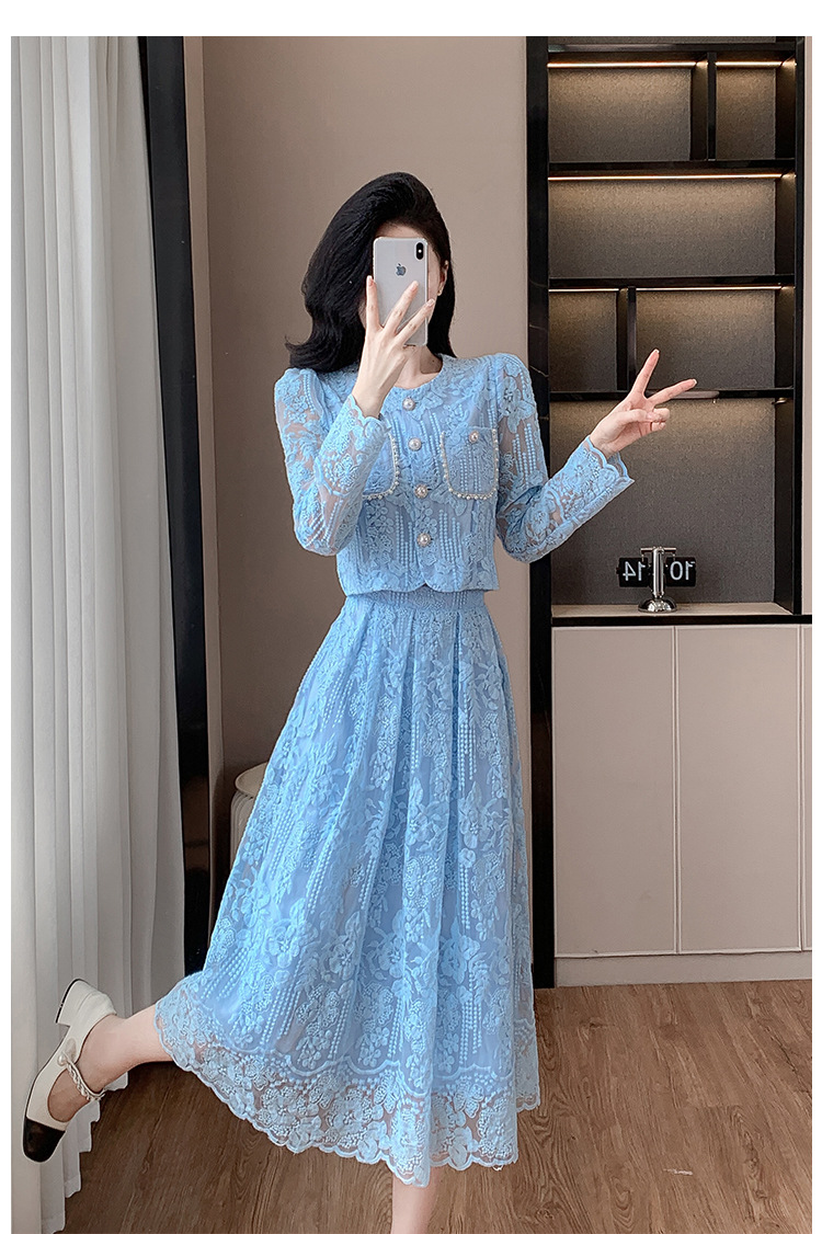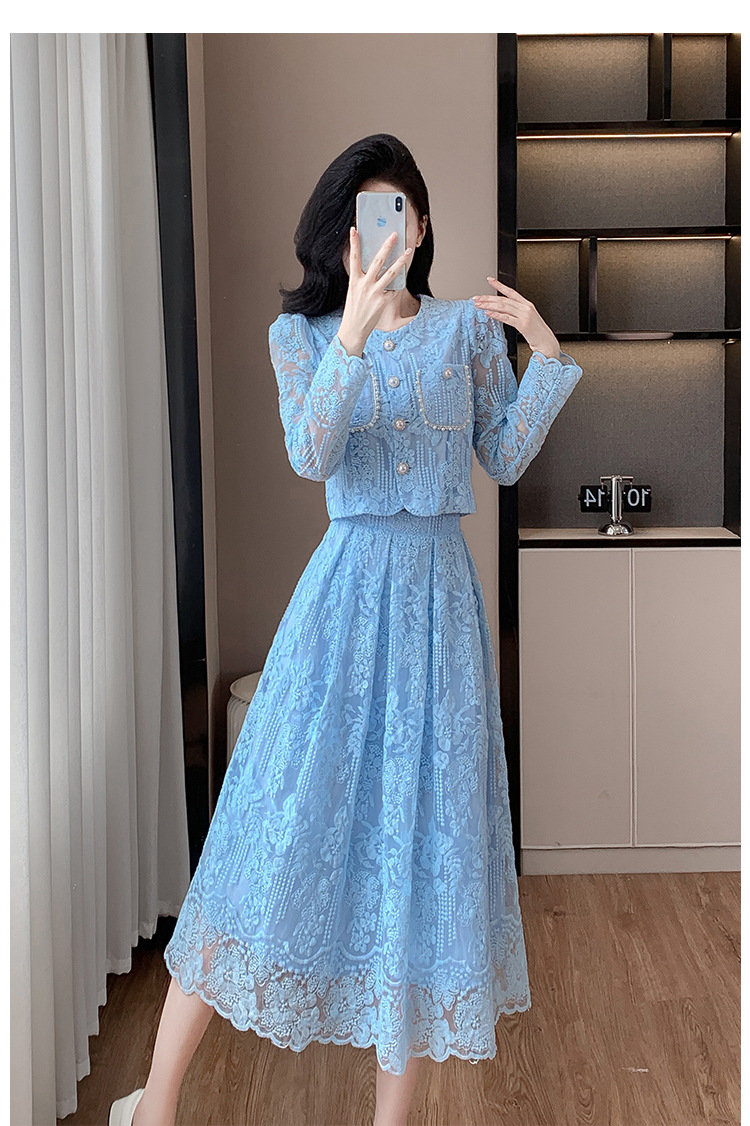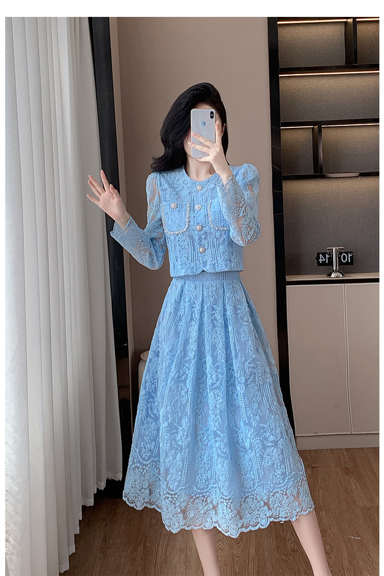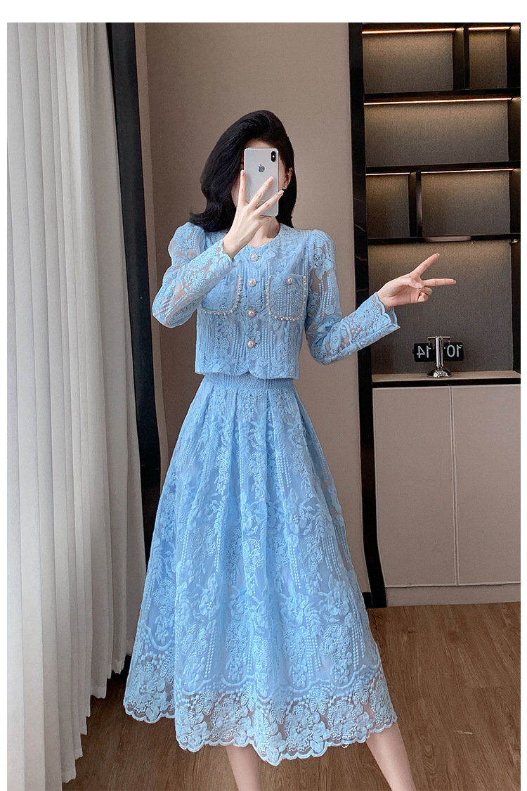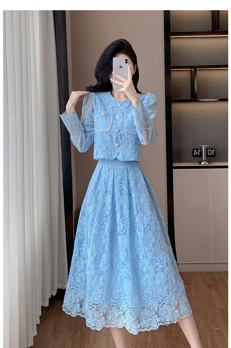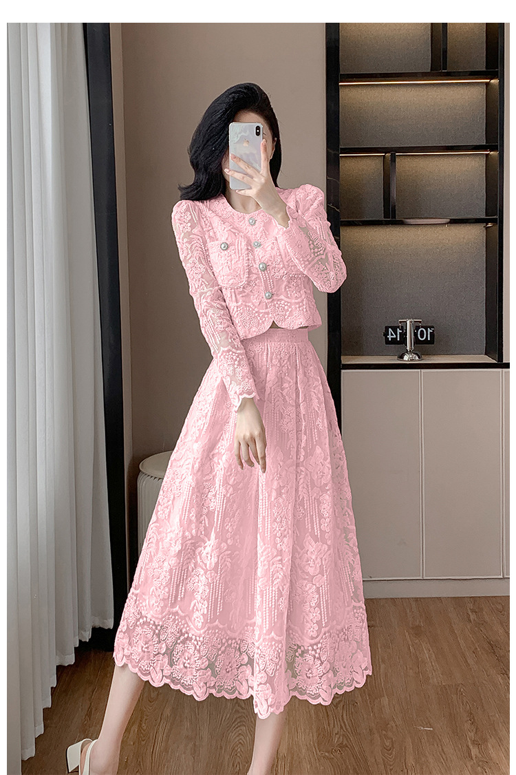 تنورة بدلة مطرزة أنيقة من Socialite Light الفاخرة من الدانتيل القابل للذوبان في الماء، طقم من قطعتين