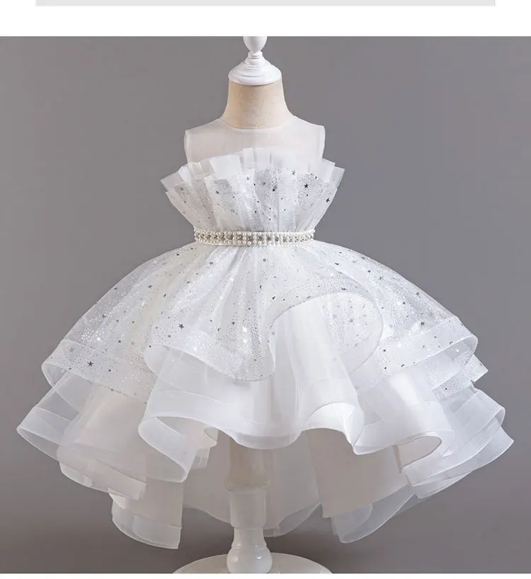 Lace Mesh Sleeveless Party Dress for Kids Girl Fashion Solid Color Girls Party Dresses Summer Evening Dresses 3-12 Years