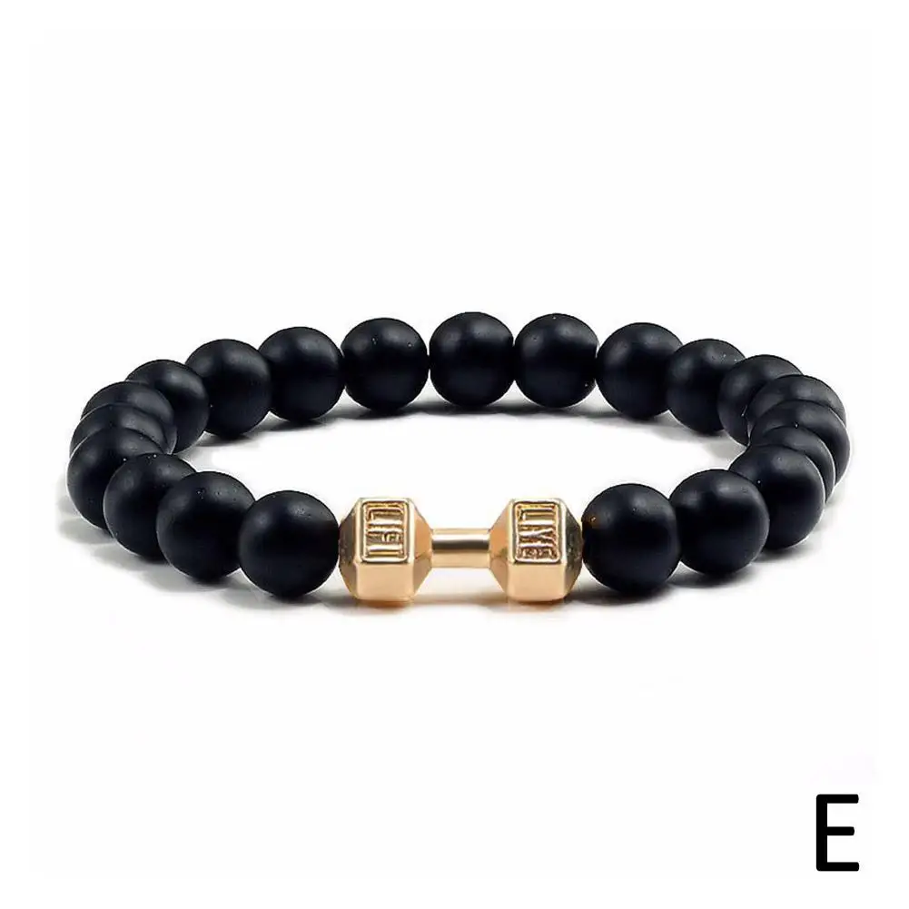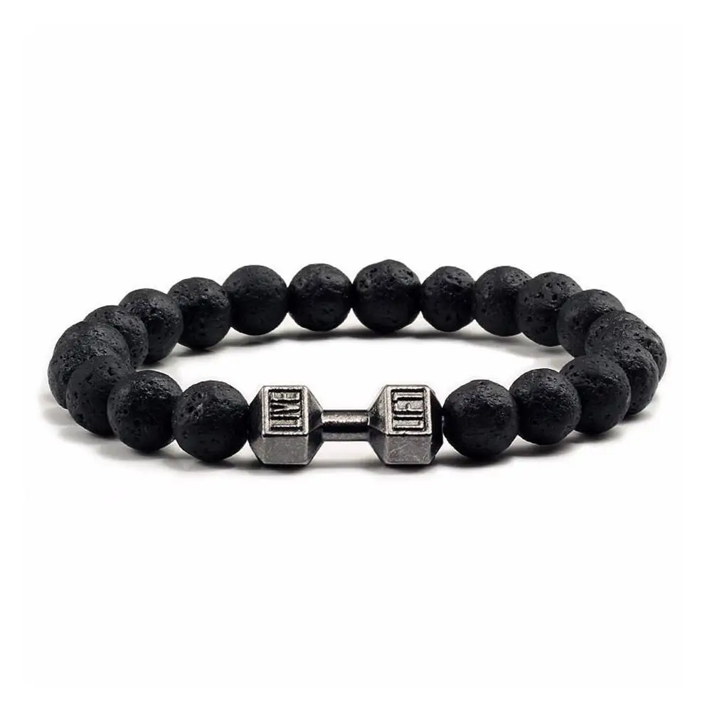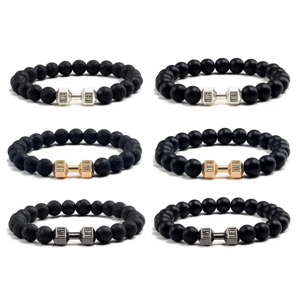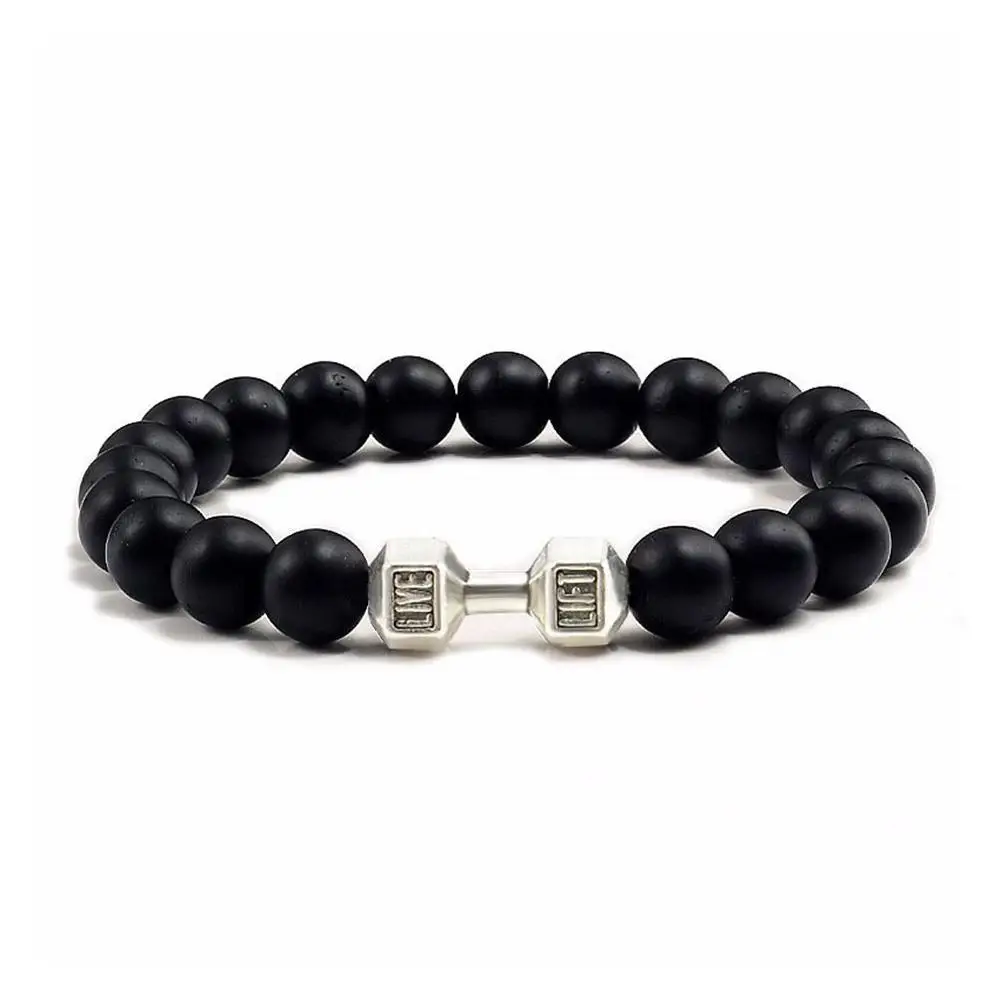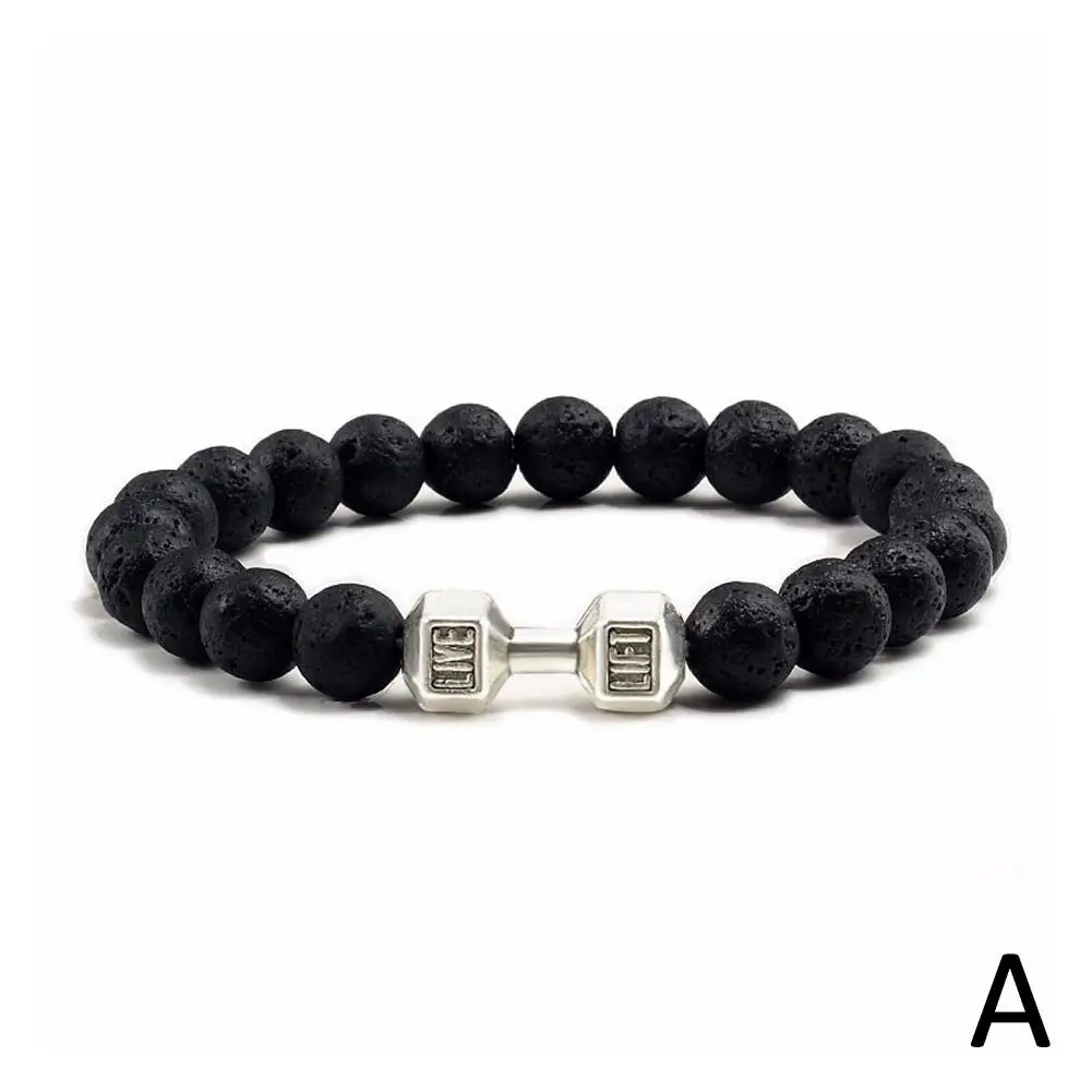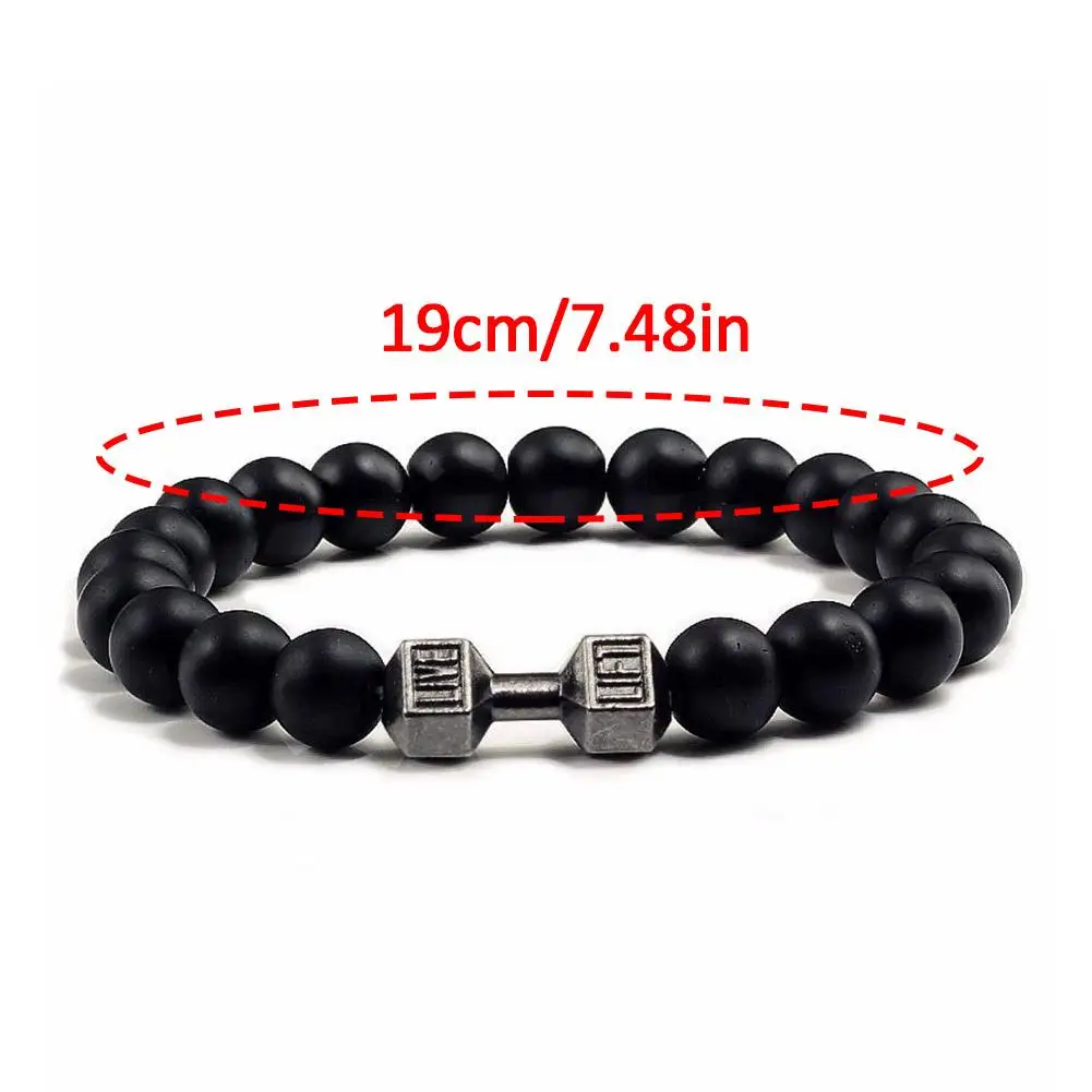 1Pcs Natural Stone Dumbbell Beaded Bracelet Black Beads Fitness Fit Life Prayer Bracelets Bangles Barbell Men Jewelry