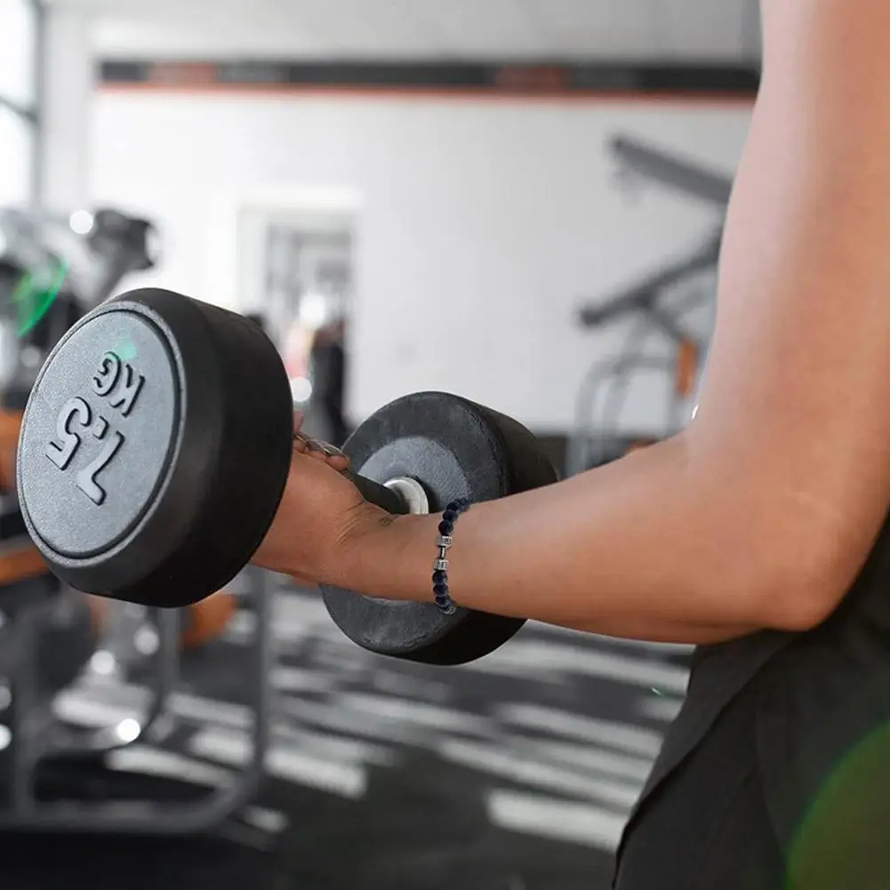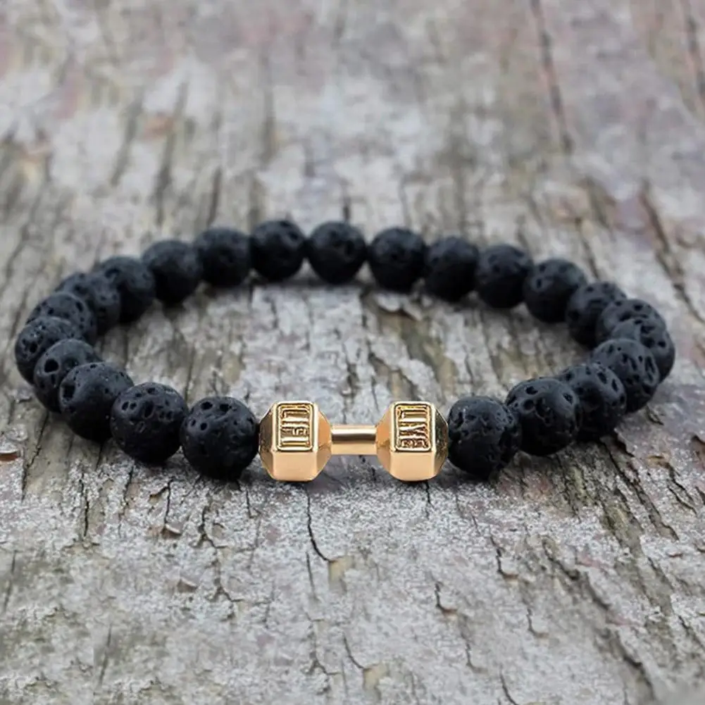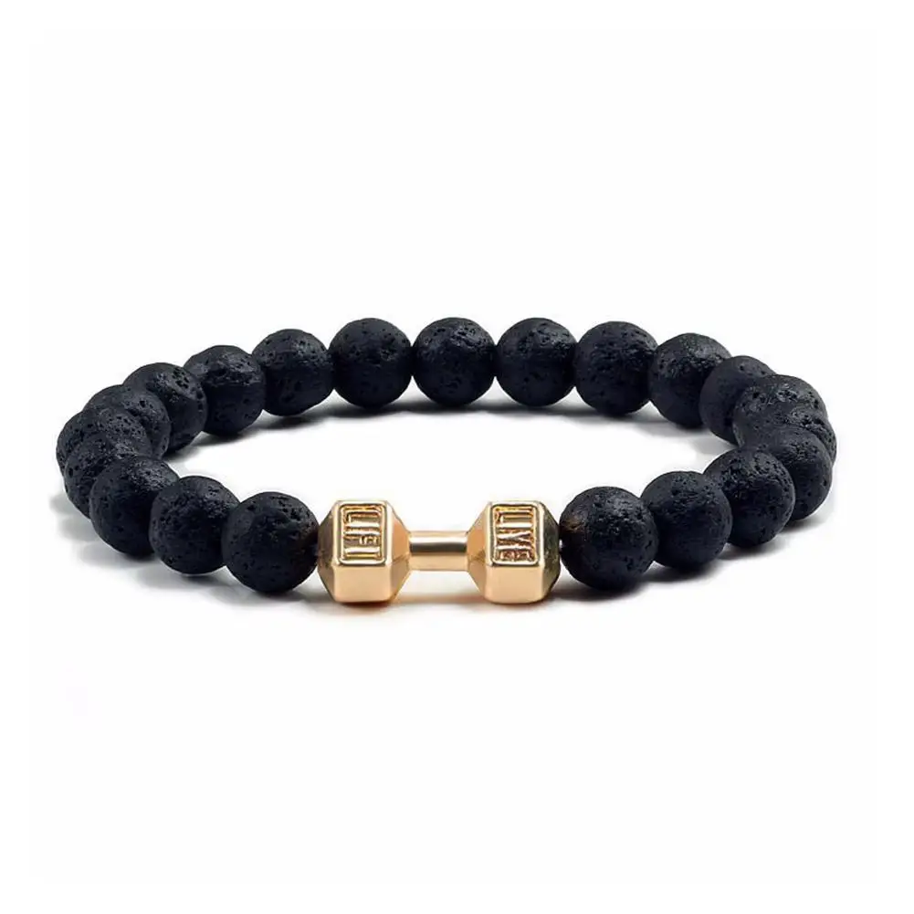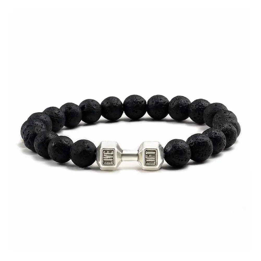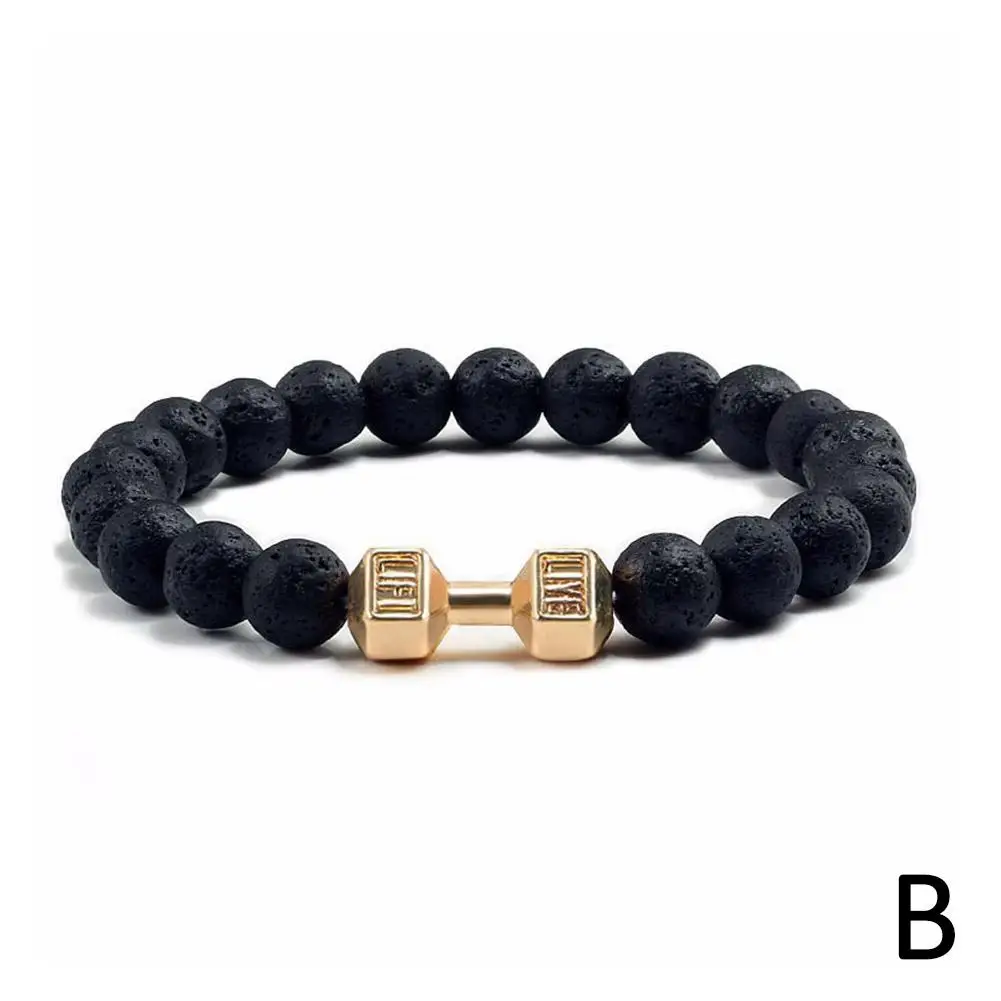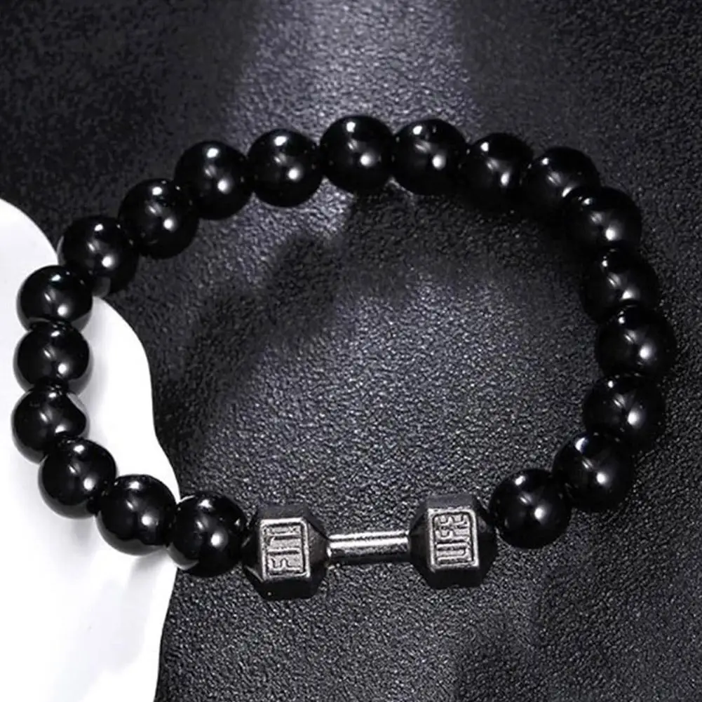 1Pcs Natural Stone Dumbbell Beaded Bracelet Black Beads Fitness Fit Life Prayer Bracelets Bangles Barbell Men Jewelry
