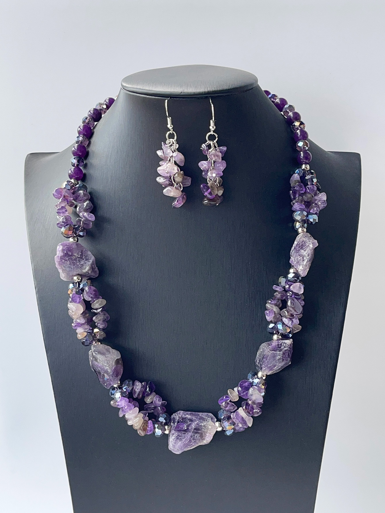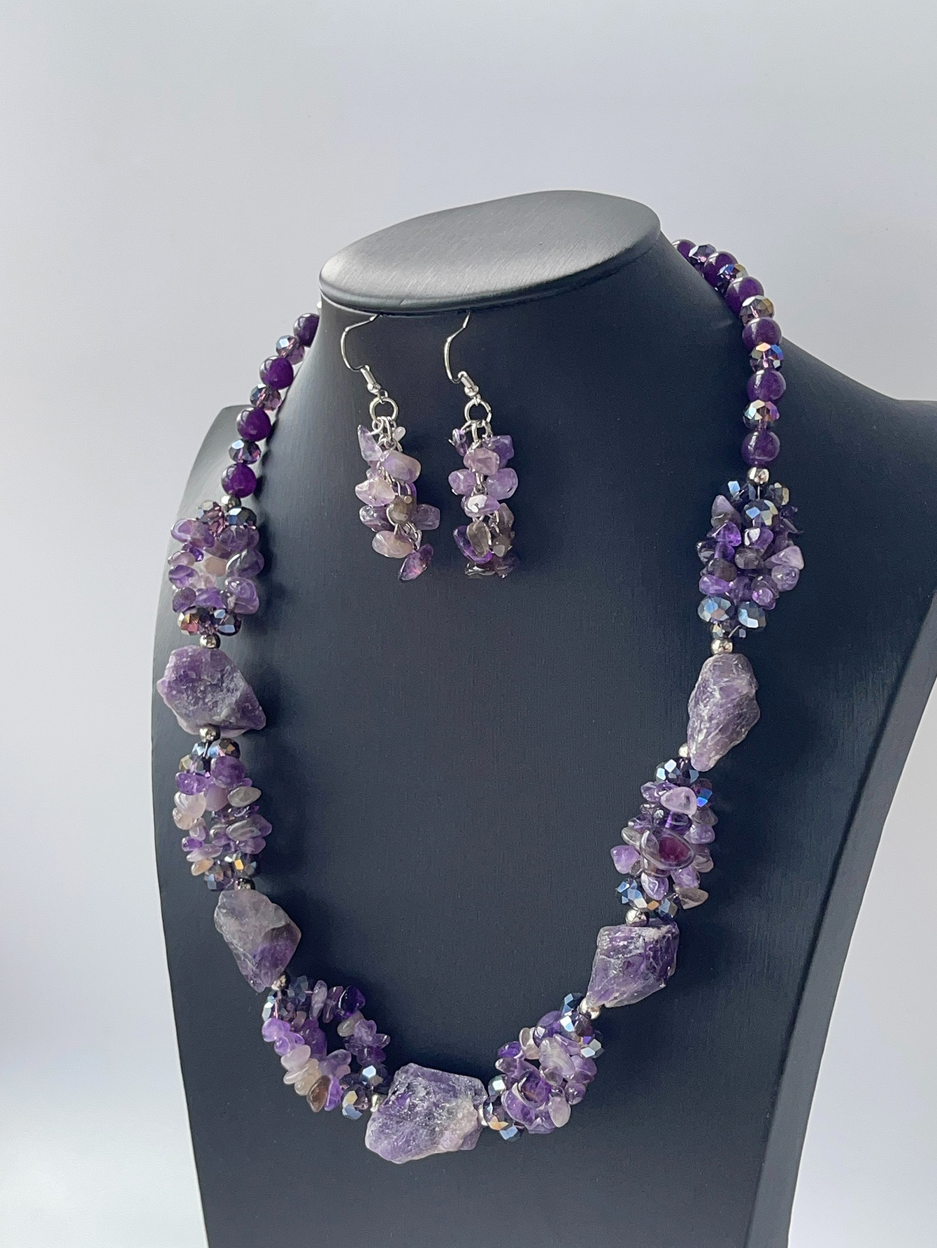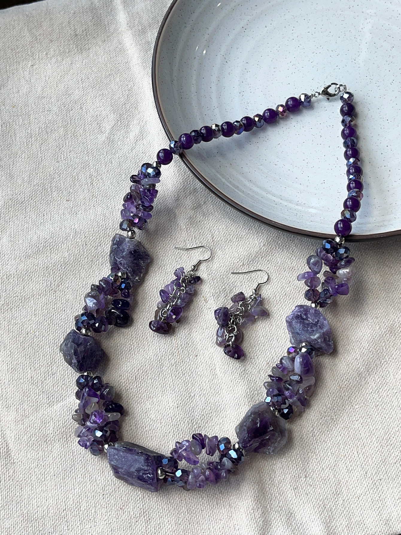Natural Stone Material: Handcrafted jewelry set featuring genuine amethyst crystals for a unique and authentic look.