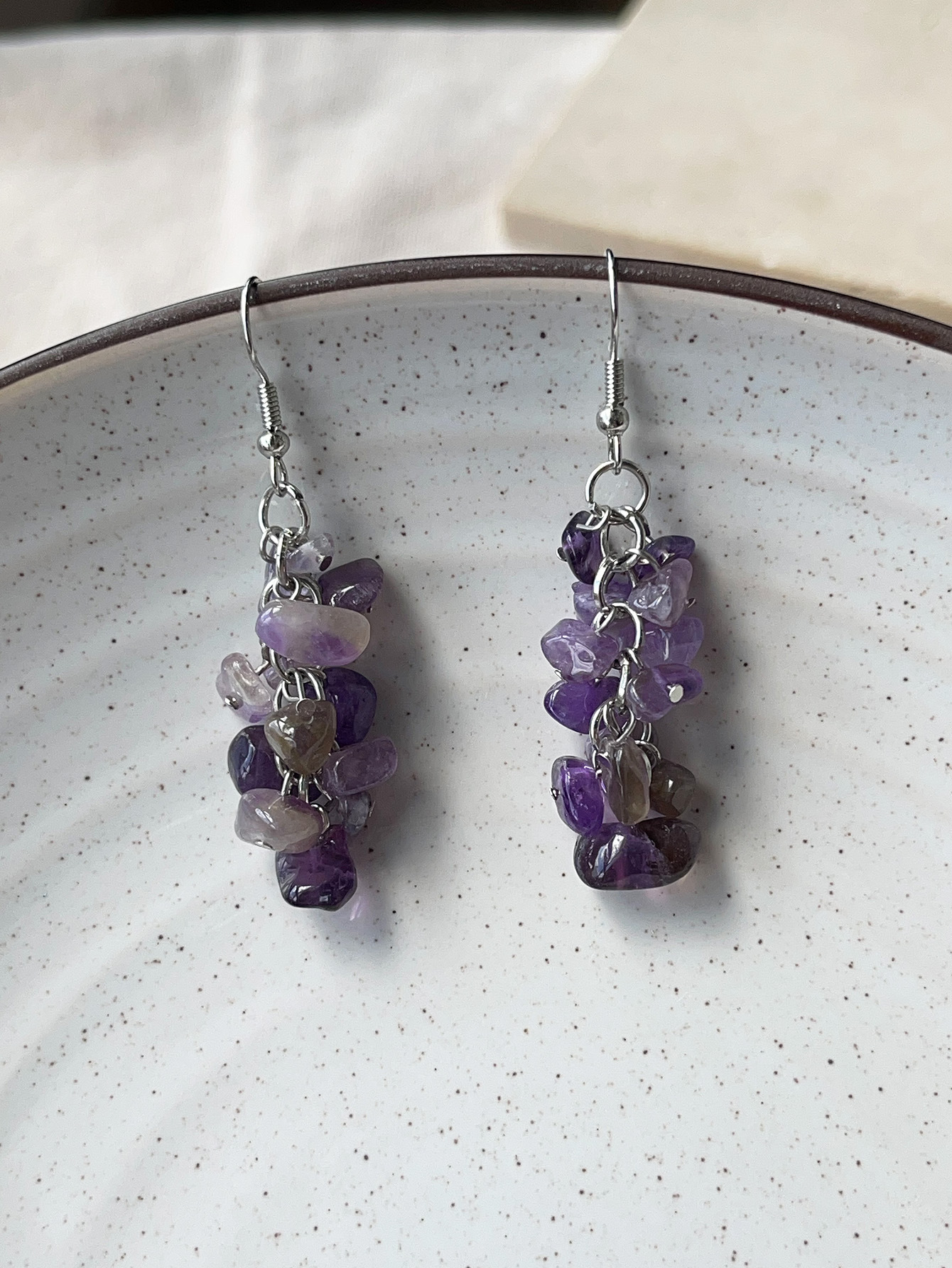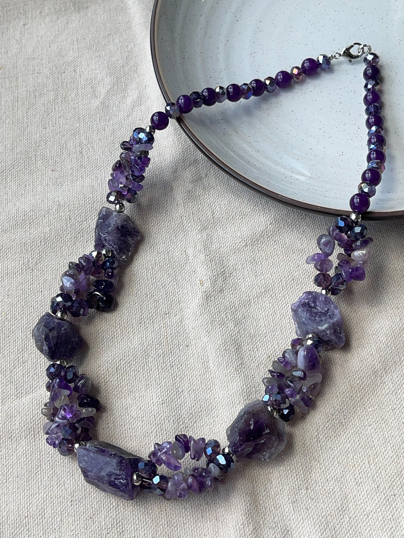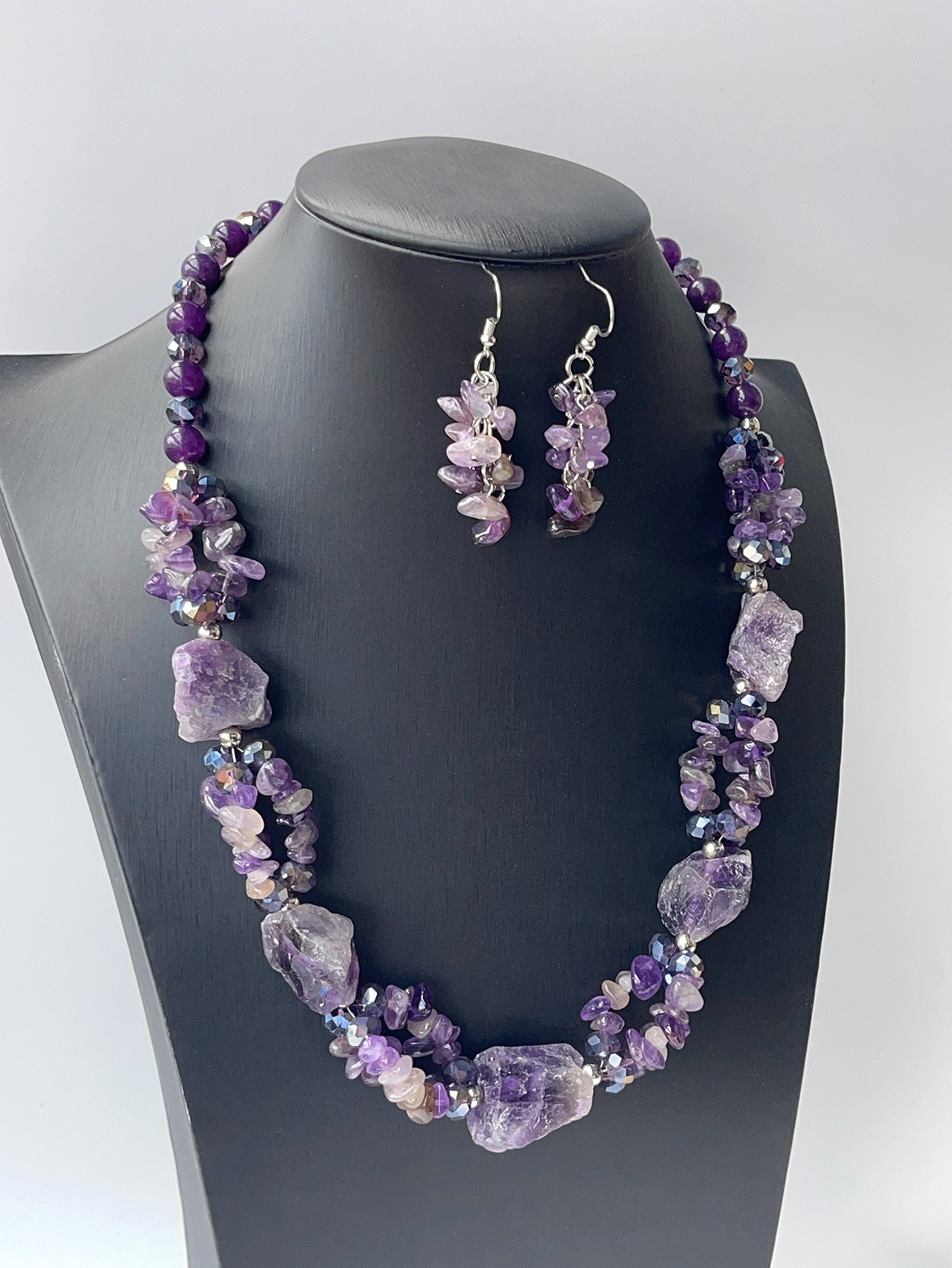 Natural Stone Material: Handcrafted jewelry set featuring genuine amethyst crystals for a unique and authentic look.