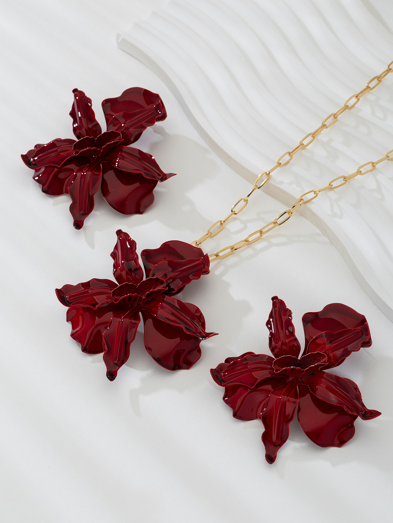 Fashionable design: Exaggerated big flower pendant necklace and earrings set, perfect for adding a stylish touch to any outfit.