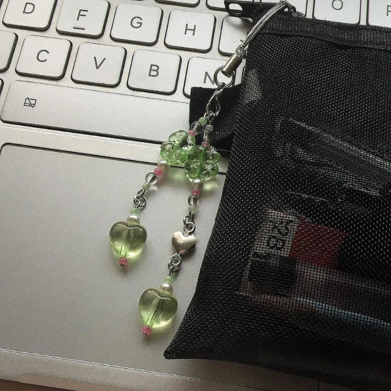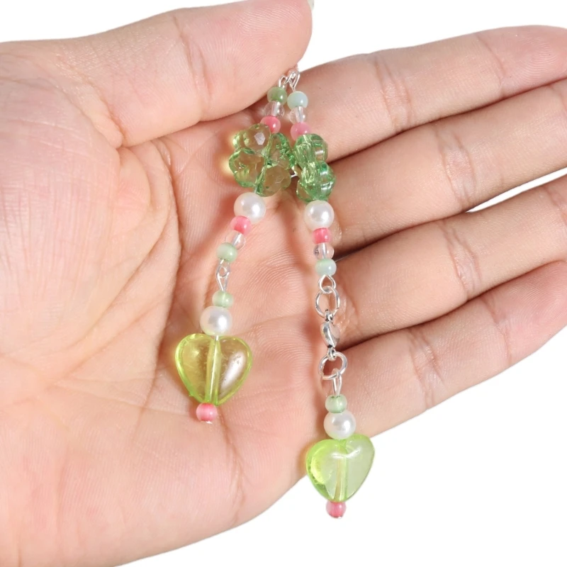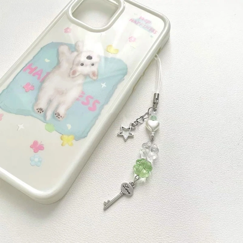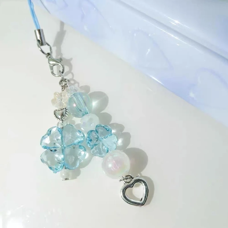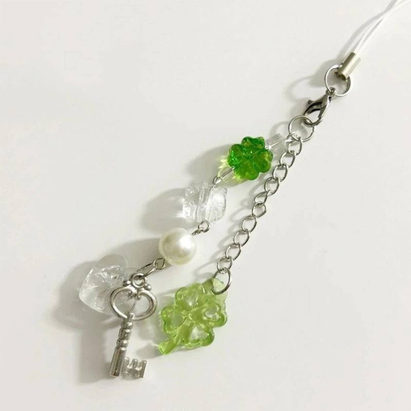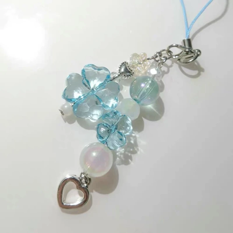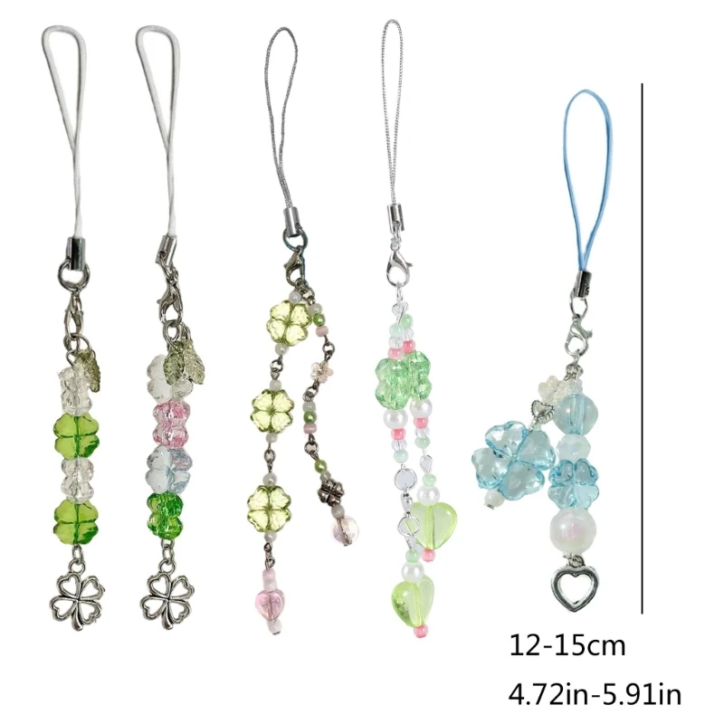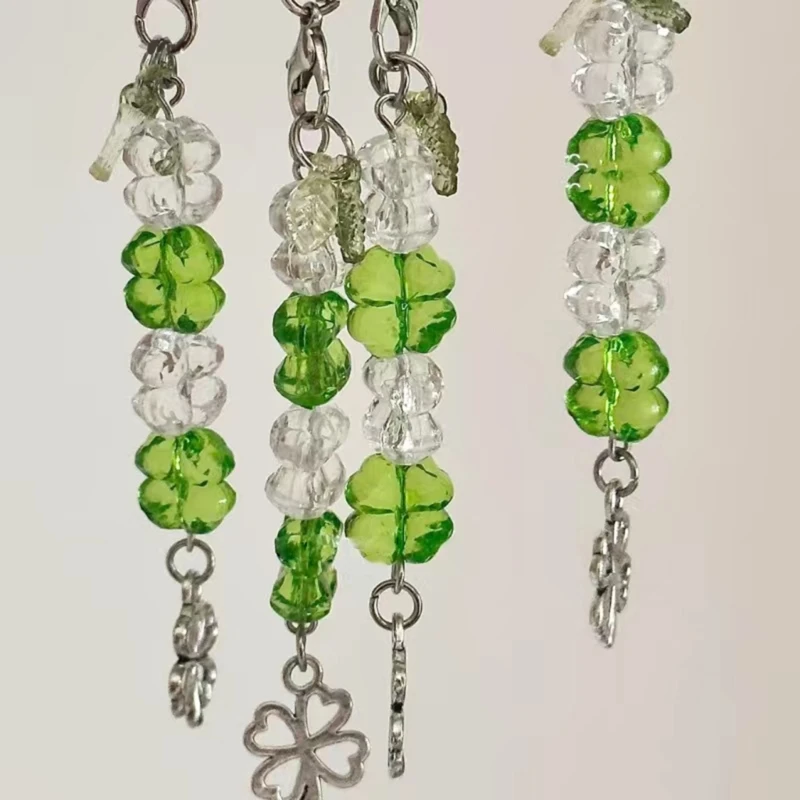 Handmade Beaded Phone Chain Four Leaf Clovers Cellphone Charm Colorful Keyring Pendant Cellphone Charm Accessory