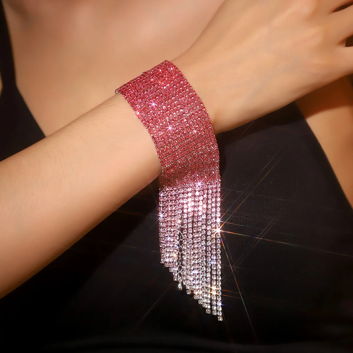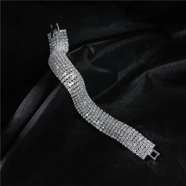 Luxury Bling Crystal Rhinestone Bracelets for Women Silver Color Elegant Bridal Wedding Jewelry