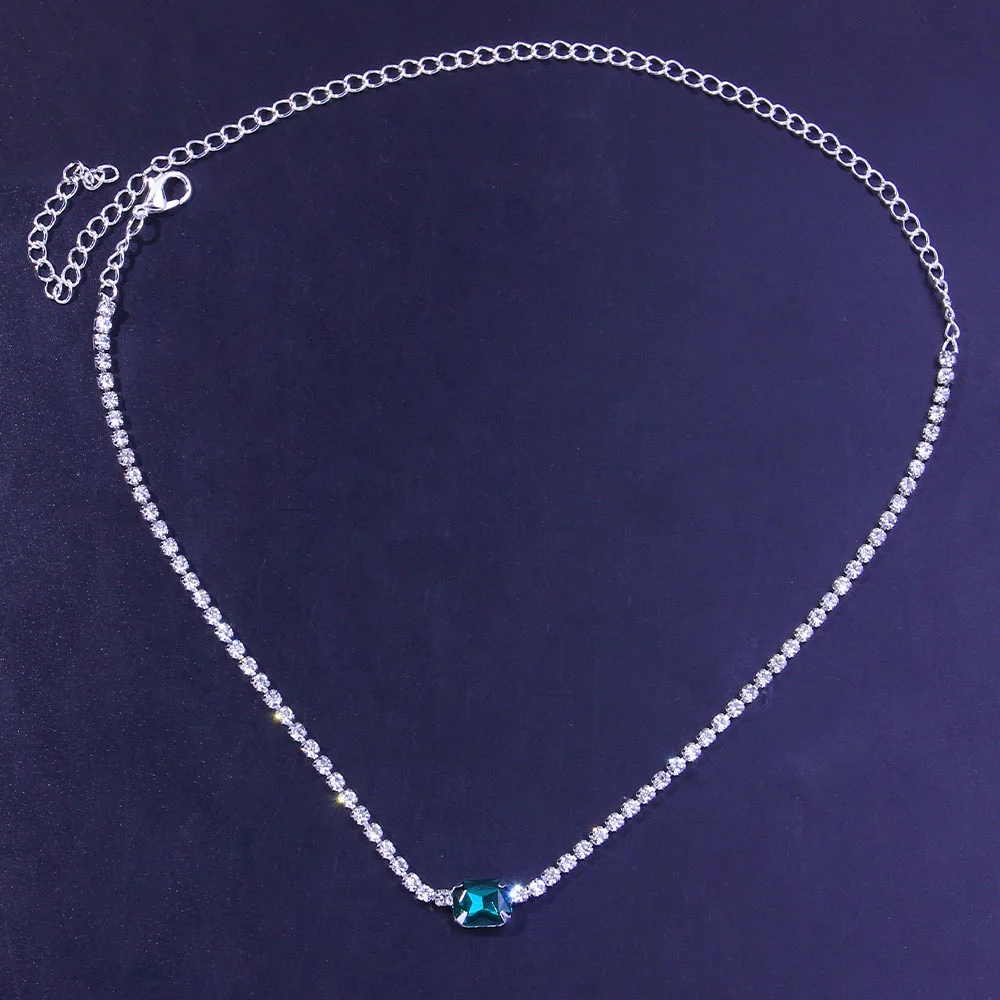 Stonefans Fashion Green Crystal Pendant Necklace Chain for women Simple Jewelry Statment Rhinestone Choker Colllar Chain Gfts
