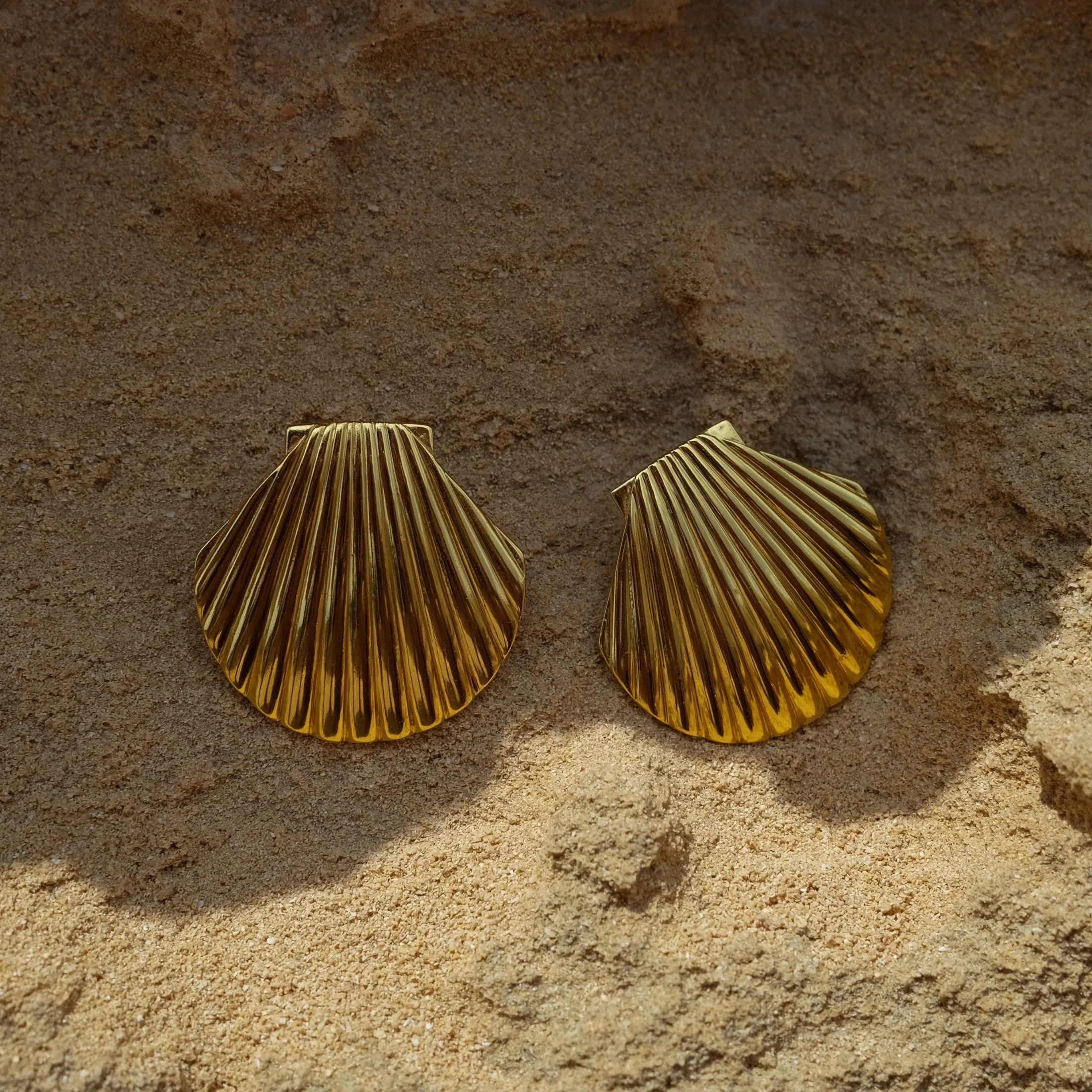Uworld Stainless Steel Big Textured shell Big Stud Earrings Distinctive 18K Gold Color Geometric Metal Waterproof Luxury Jewelry