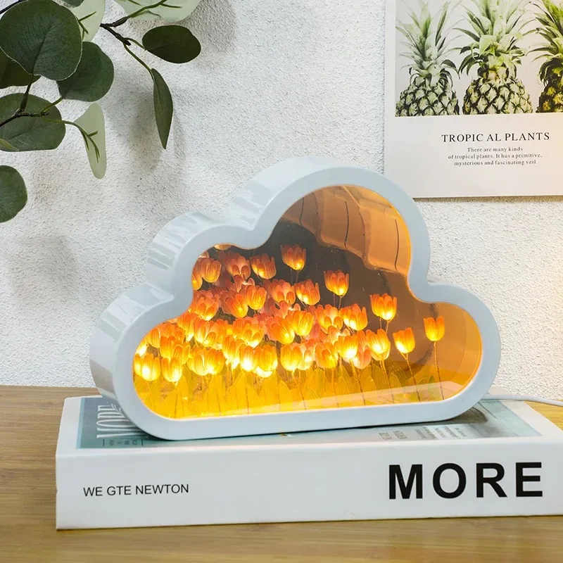LED Night Light Tulip Cloud Sea of Flowers Night Light Creative Atmosphere Light Qixi Lovers Gift Desktop Decor Christmas Gift