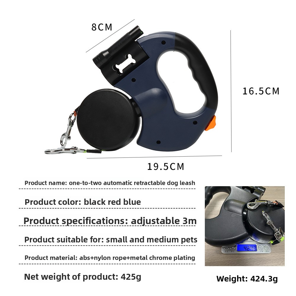 Automatic Retractable: Smooth retraction mechanism for flexible leash length adjustment.