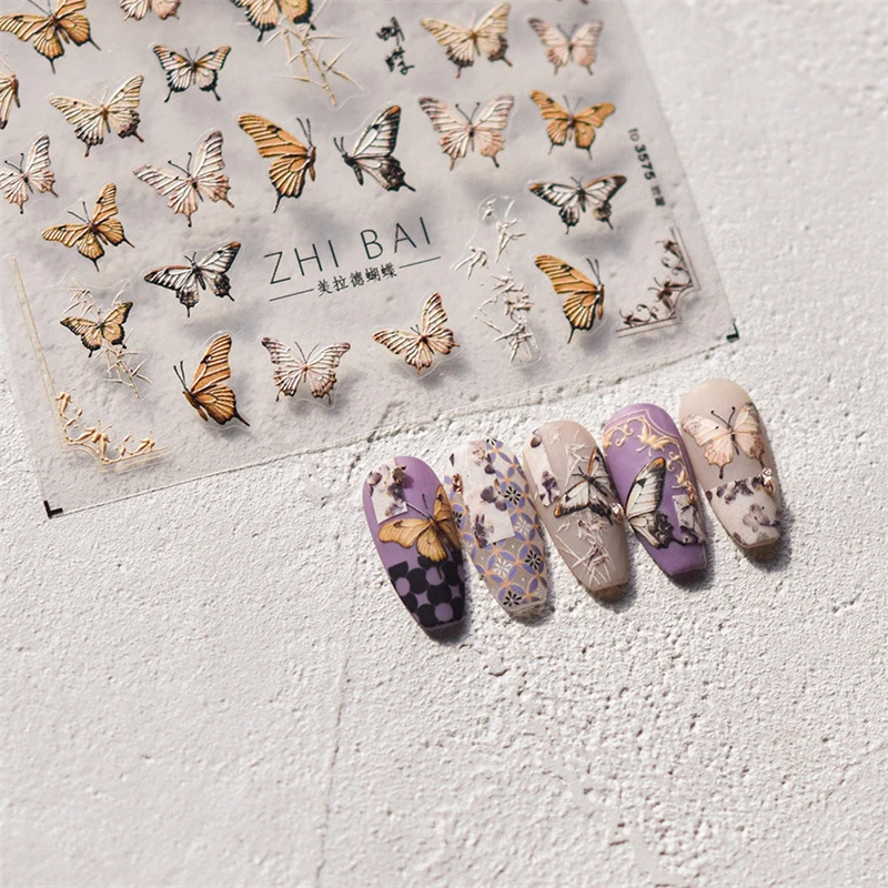 1 pc 5D Embroidery Bee Nail Art Sticker Embossed Butterfly Insect Nail Sticker High Quality Nail Art Design Decoration Sticker