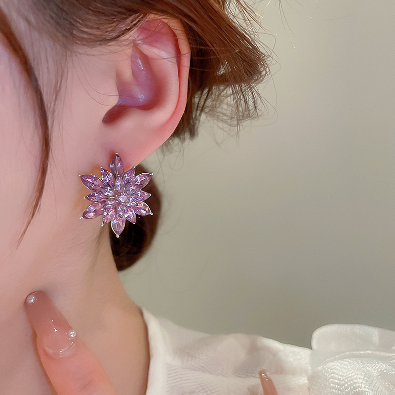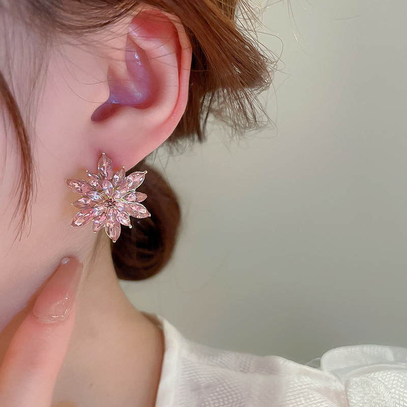 Exaggerated Luxury Crystal Flower Stud Earrings Women's Temperament Elegant Fashion Design Wedding Party Jewelry Valentine Gifts