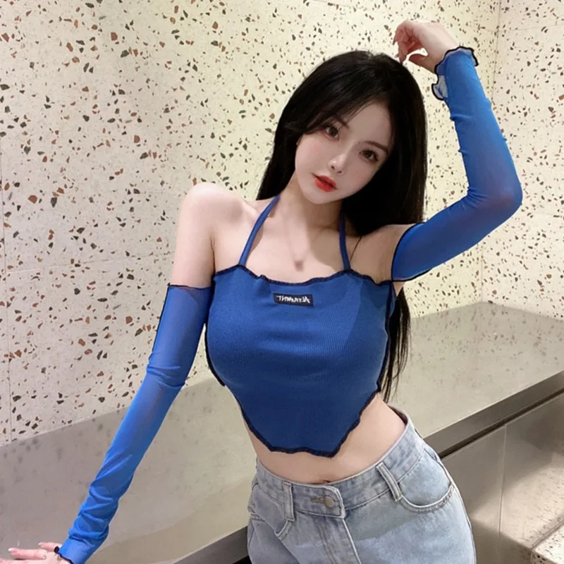 1. Pull-On Closure, Halterneck, Long Sleeve, Cropped Top.