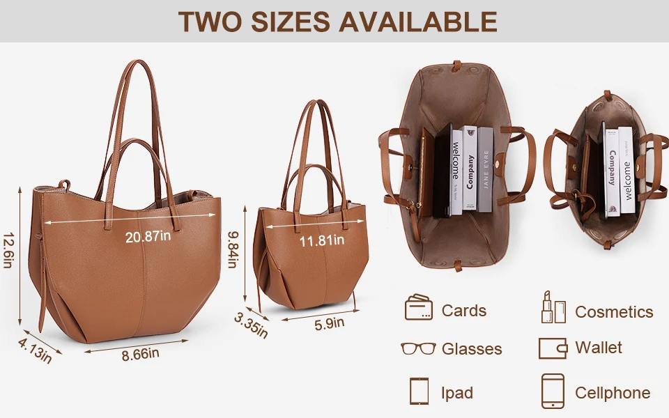 Size large: 20.67x12.48x4.1inch; Size small: 16.38x9.75x3.32inch. The storage space of this cute tote bag is roomy to fit your daily belongings. You can easily take your iPad, cell phone, wallet, makeup, etc. with you.