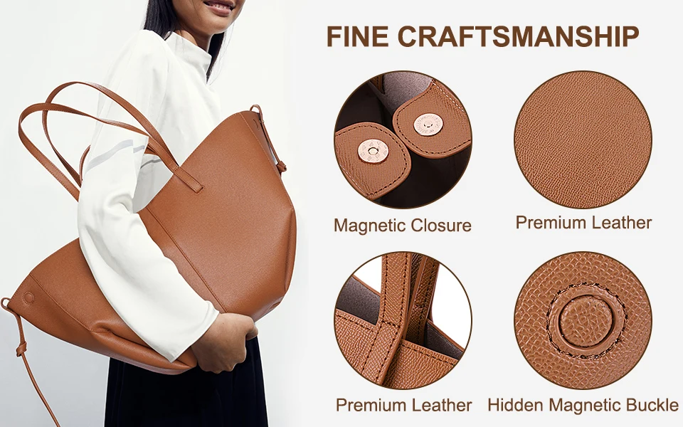 The work tote bag is made of grained faux leather, which is wear-resistant and good in texture, durable to use. The leather surface is easy to clean.