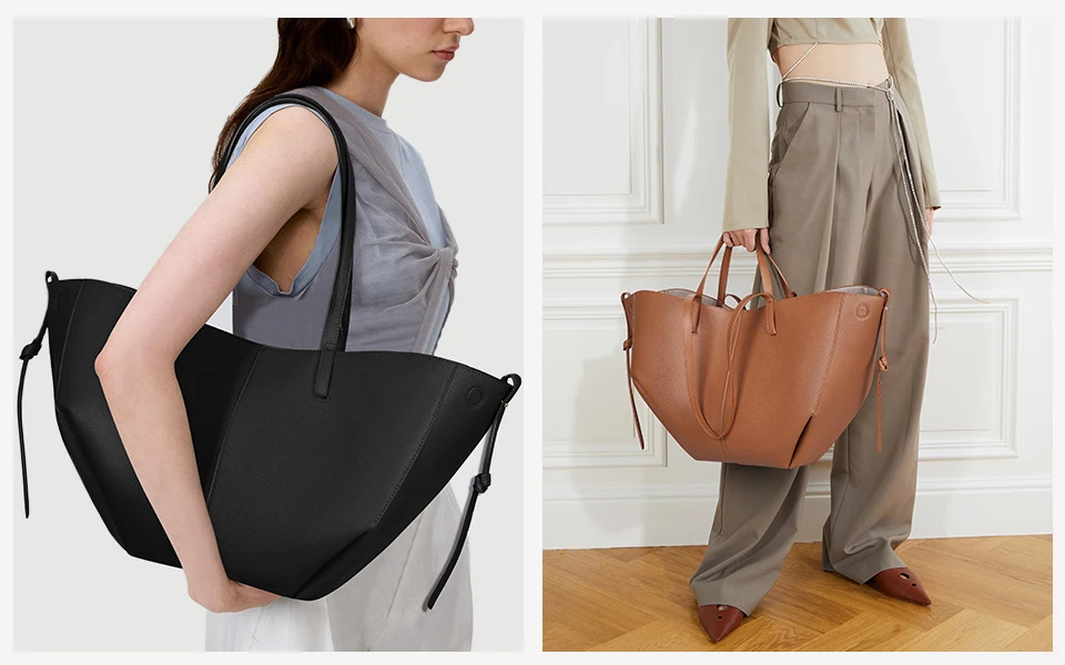 This tote handbag with waves, folds, and curves design, can be worn in two ways. Easy to match with your everyday outfits.