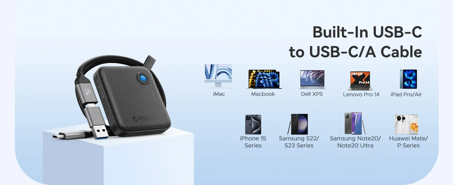 Designed for portability, ORICO portable ssd is small and easy to carry wherever you go. It includes a silicone lanyard for convenient attachment and travel.