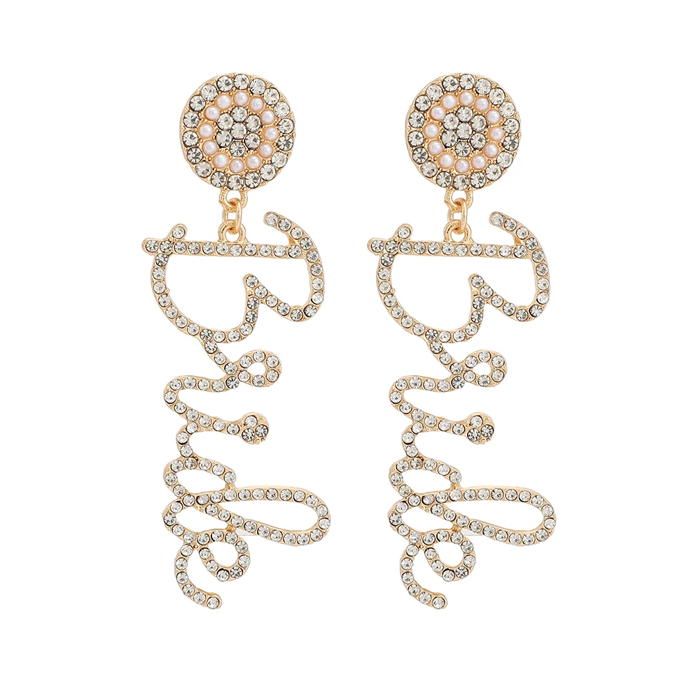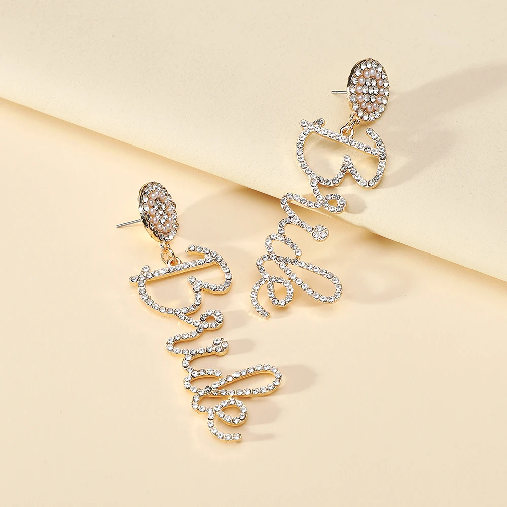 Pendientes largos con diseño de letras, nuevos y románticos, de moda, para mujer, de lujo, para novias, bodas y fiestas.