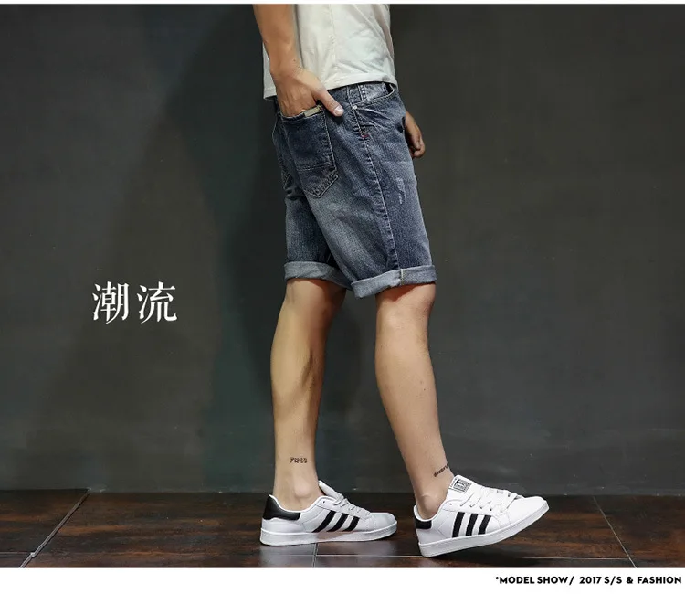 Pantalones cortos vaqueros grises para hombre, de buena calidad, de algodón, hasta la rodilla, de verano, talla grande 42