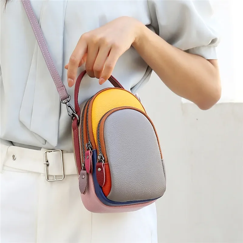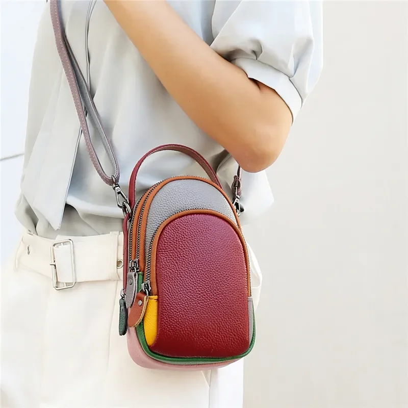 Número de modelo : Bolso de mano para mujer 100 % de piel auténtica, diseño mini, bolsos para teléfono móvil y