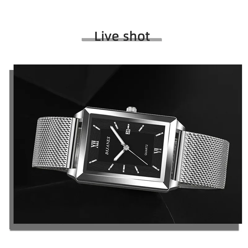 Relojes de marca superior 2024 para hombre, reloj de pulsera de cuarzo cuadrado de lujo a la moda, resistente al agua, calendario, reloj plateado y dorado para hombre, reloj para hombre