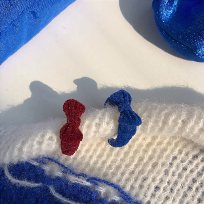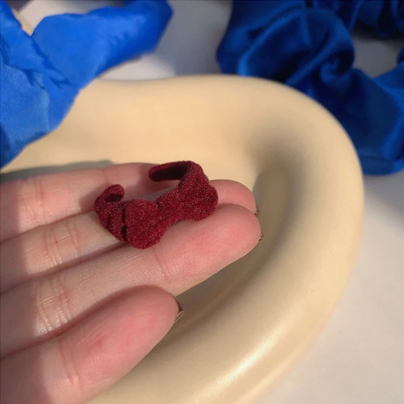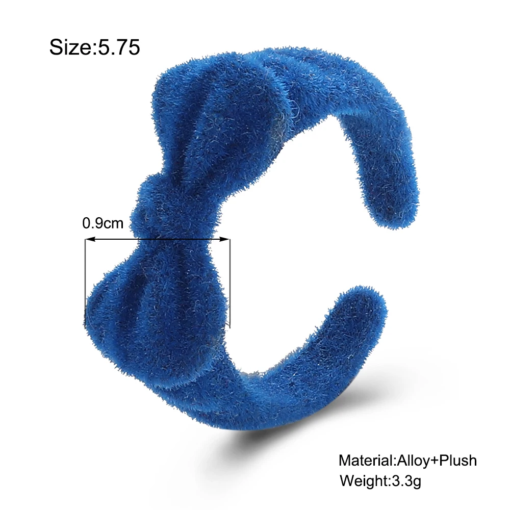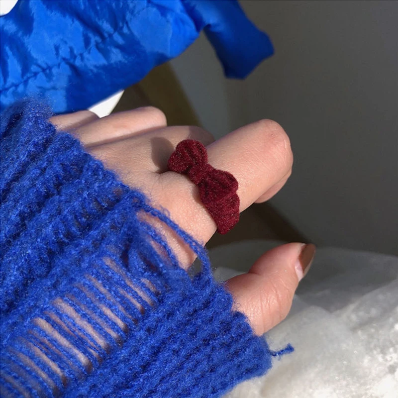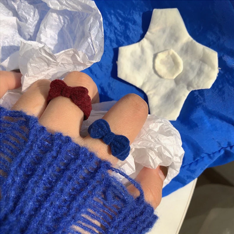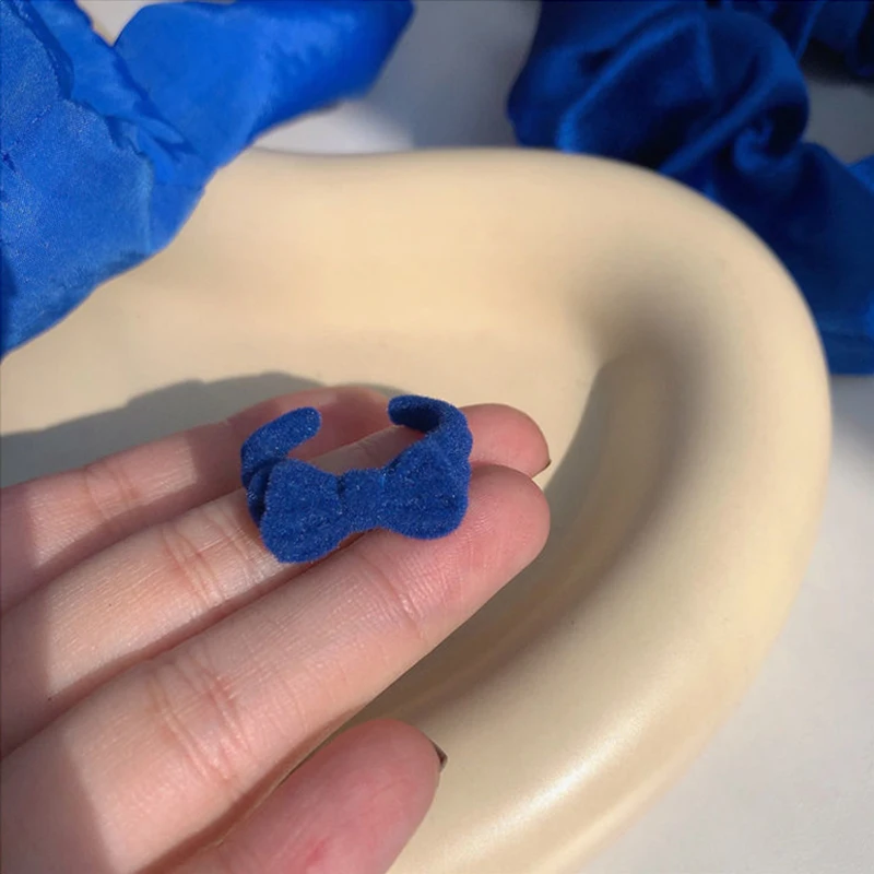 Anillo de lazo de terciopelo para mujeres y niñas, bonito anillo con lazo azul y rojo, regalo para novias y amantes, joyería de boda de moda coreana.