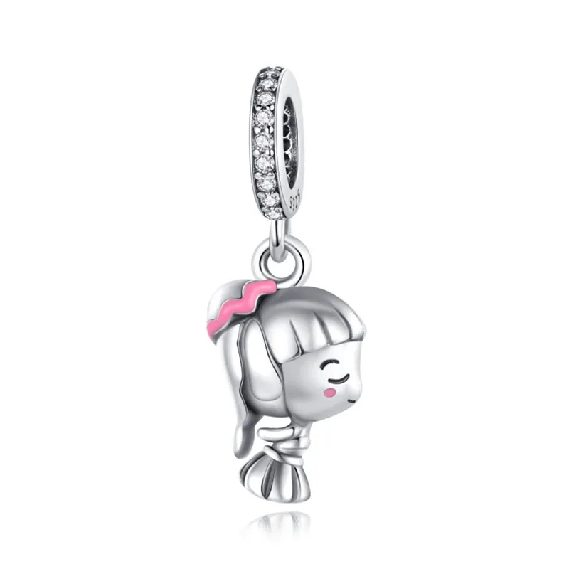 925 Sterling Silver Boy Girl and Heart Shape Pendant Charm Couple Lovers Bead Fit Pandora Original Bracelet DIY Jewelry Making