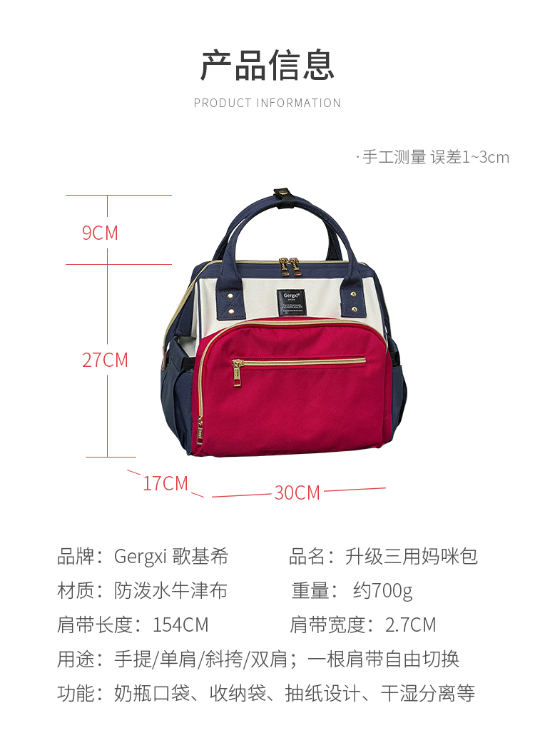 Gergxi Trendy Mummy Bag Upgraded Version Three-Purpose Handbag Baby Mom Daily Outing Large Capacity Waterproof Shoulder Bag