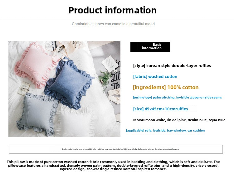 Korean Style Design: Features a stylish ruffled edge and fresh solid colors for a modern look.