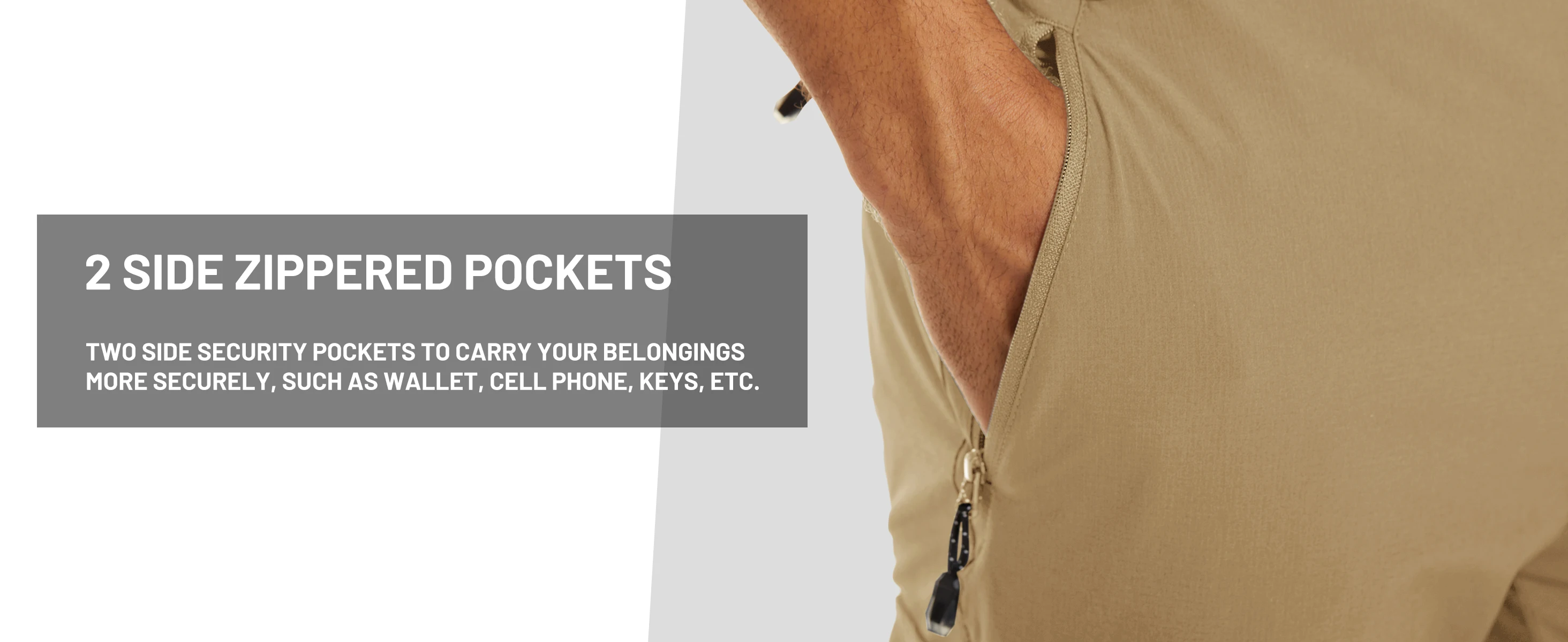 * Multi-pockets: Total 5 Pocket (include 2 side zipper pockets, 2 Thigh Pockets, 1 Back rear zipper pockets).