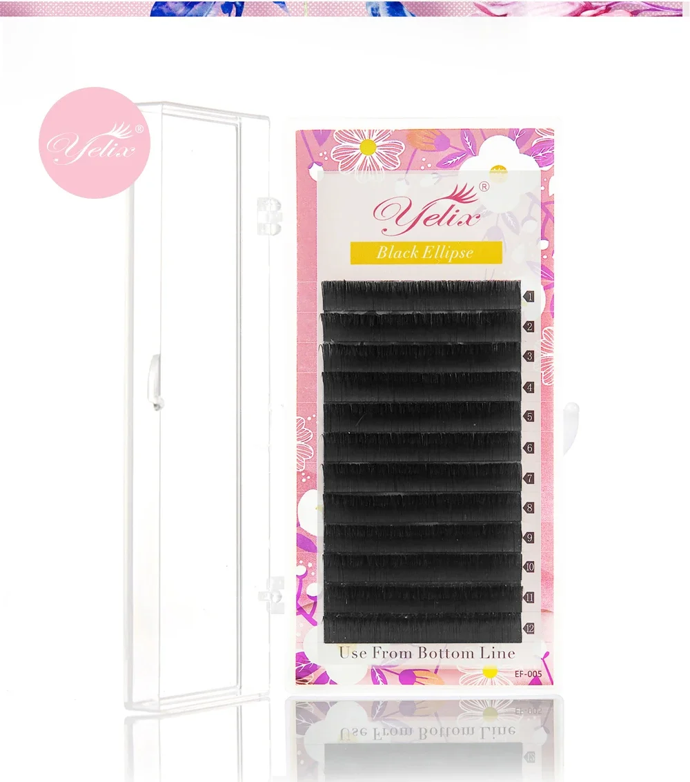 Yelix Flat Ellipse Eyelashes Split Tips Lashes 0.15mm 0.20mm Black Color False Eyelashes Super Soft Natural Eyelash Extension
