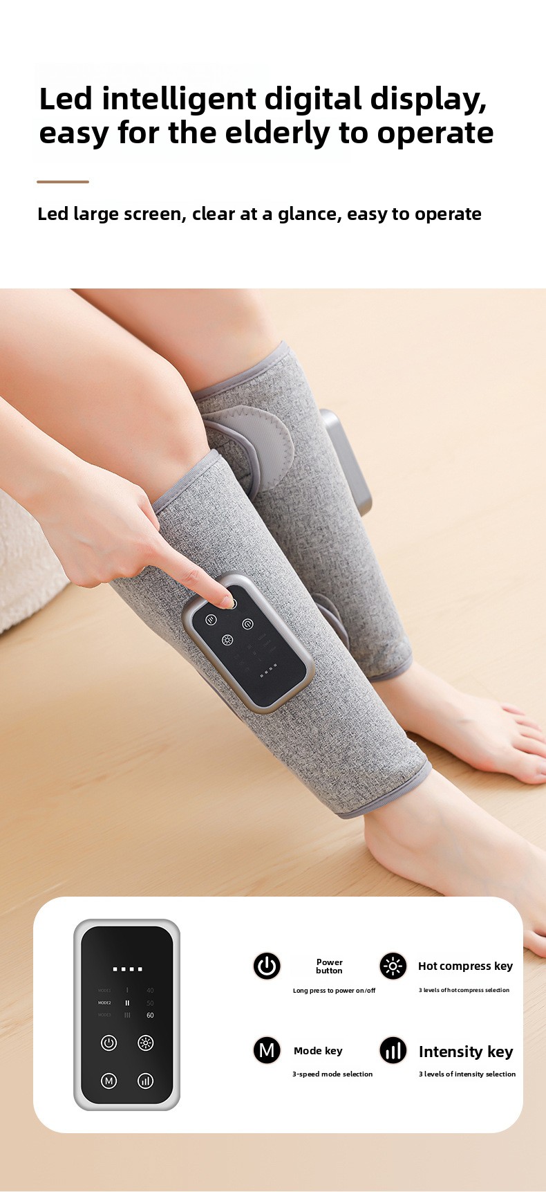 Air Wave Massage: Utilizes air pressure technology for effective calf muscle relief.