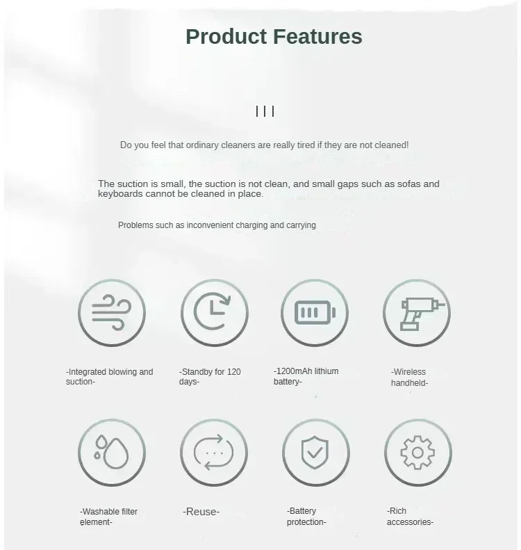 5. Accessories: charging cable, long flat mouth, brush, blow nozzle
