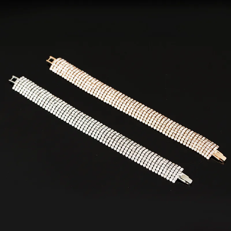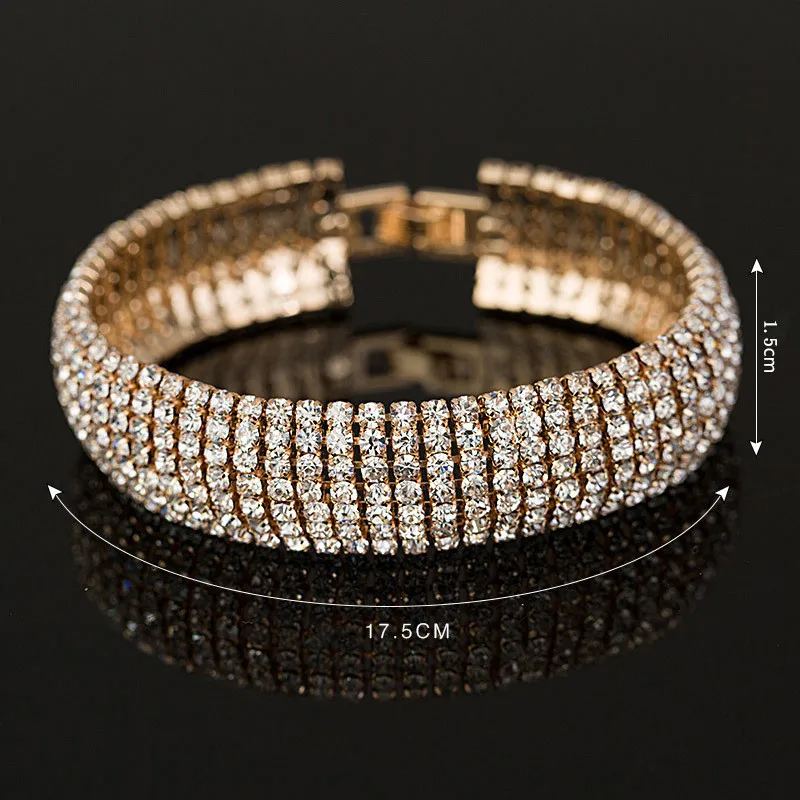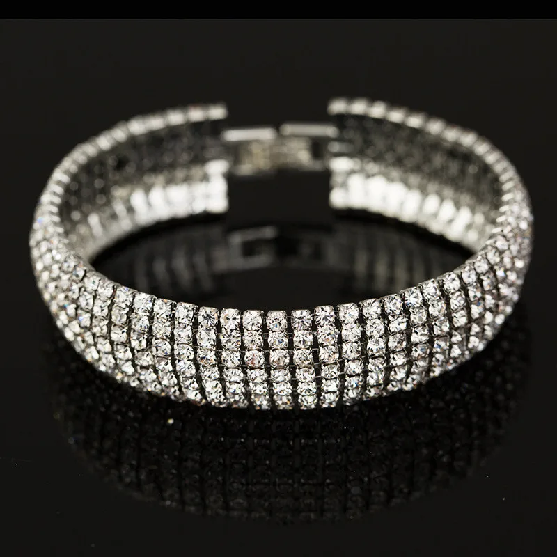 Luxury Bling Crystal Rhinestone Bracelets for Women Silver Color Elegant Bridal Wedding Jewelry