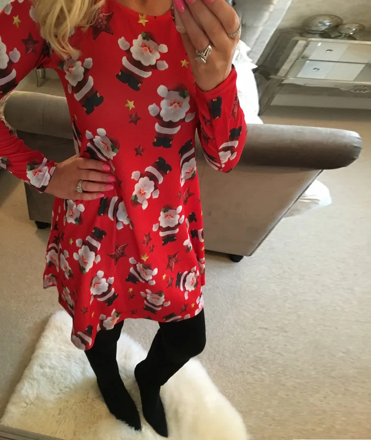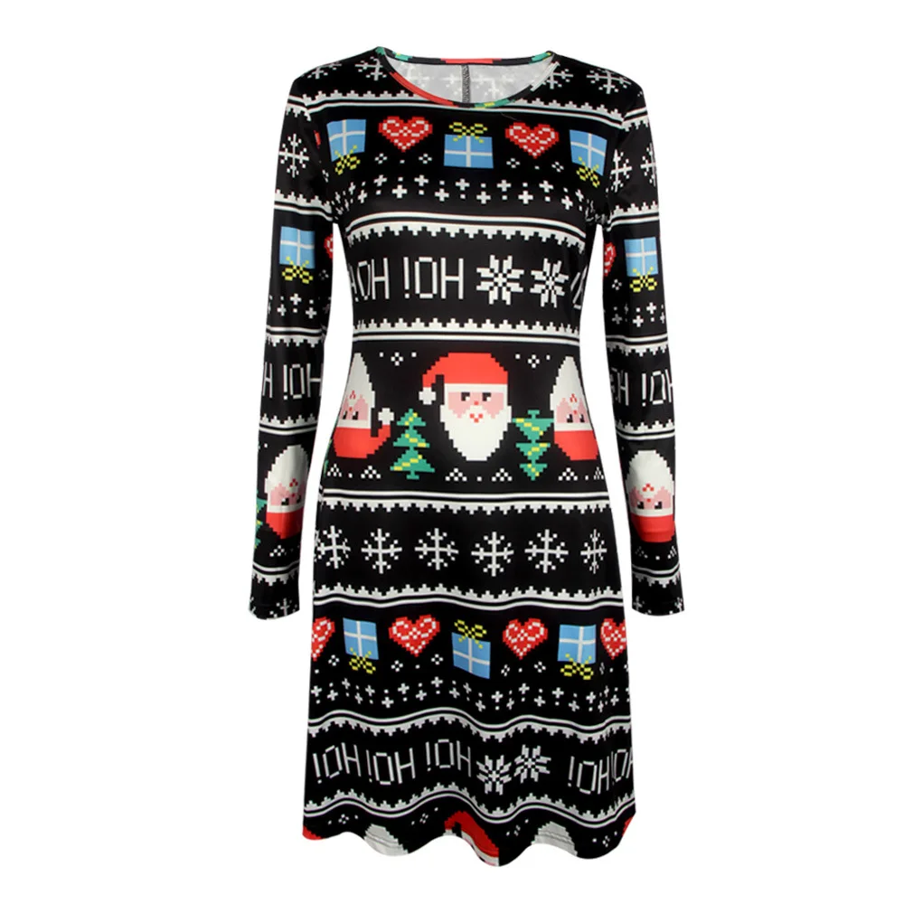 Christmas Mini Dresses For Women Fashion Christmas Trees Print Long Sleeve Loose Dress 2022 New Year Autumn Ladies Party Dress