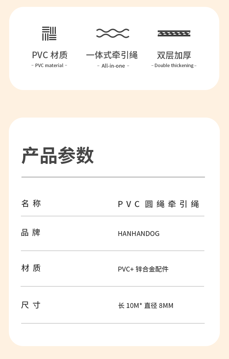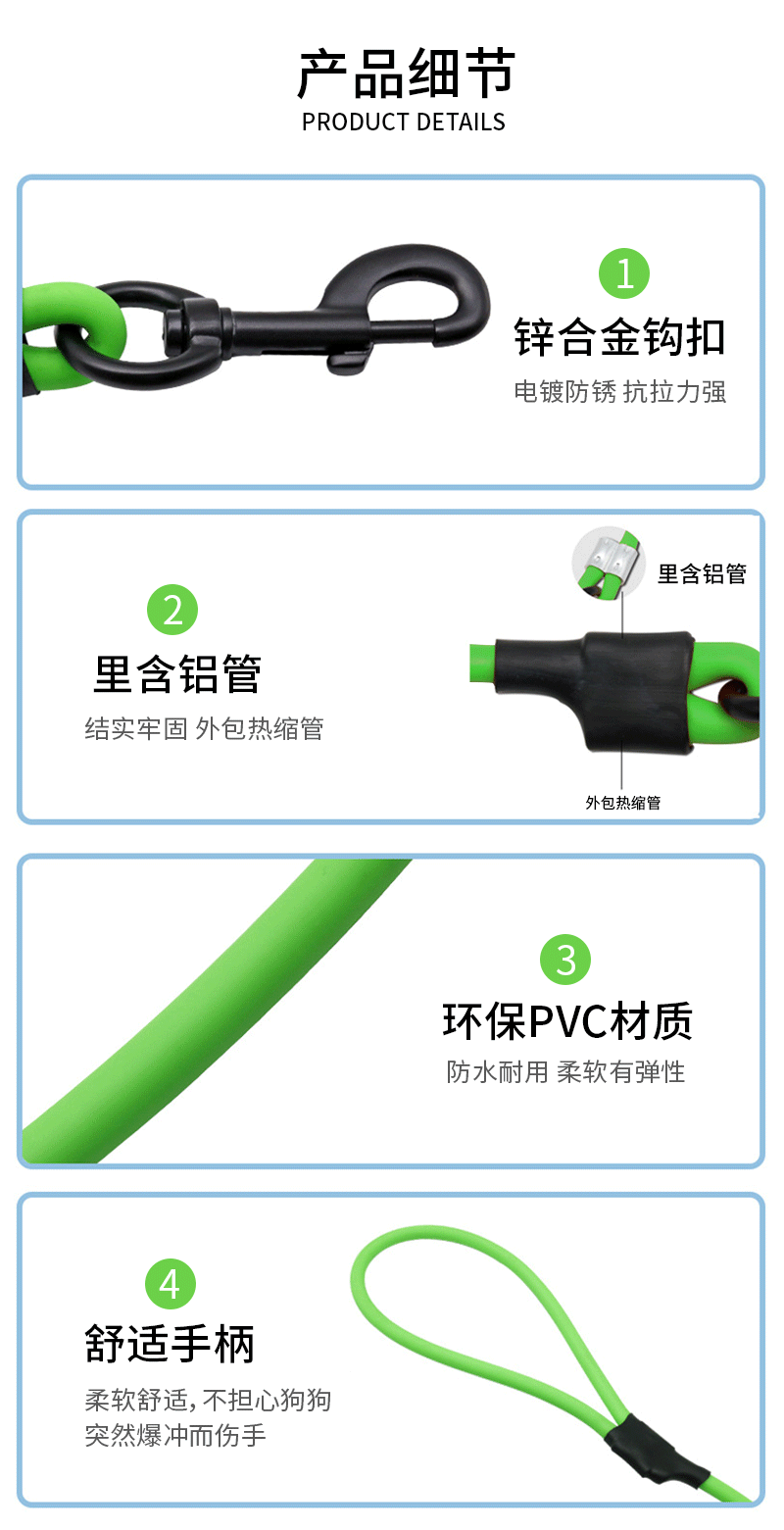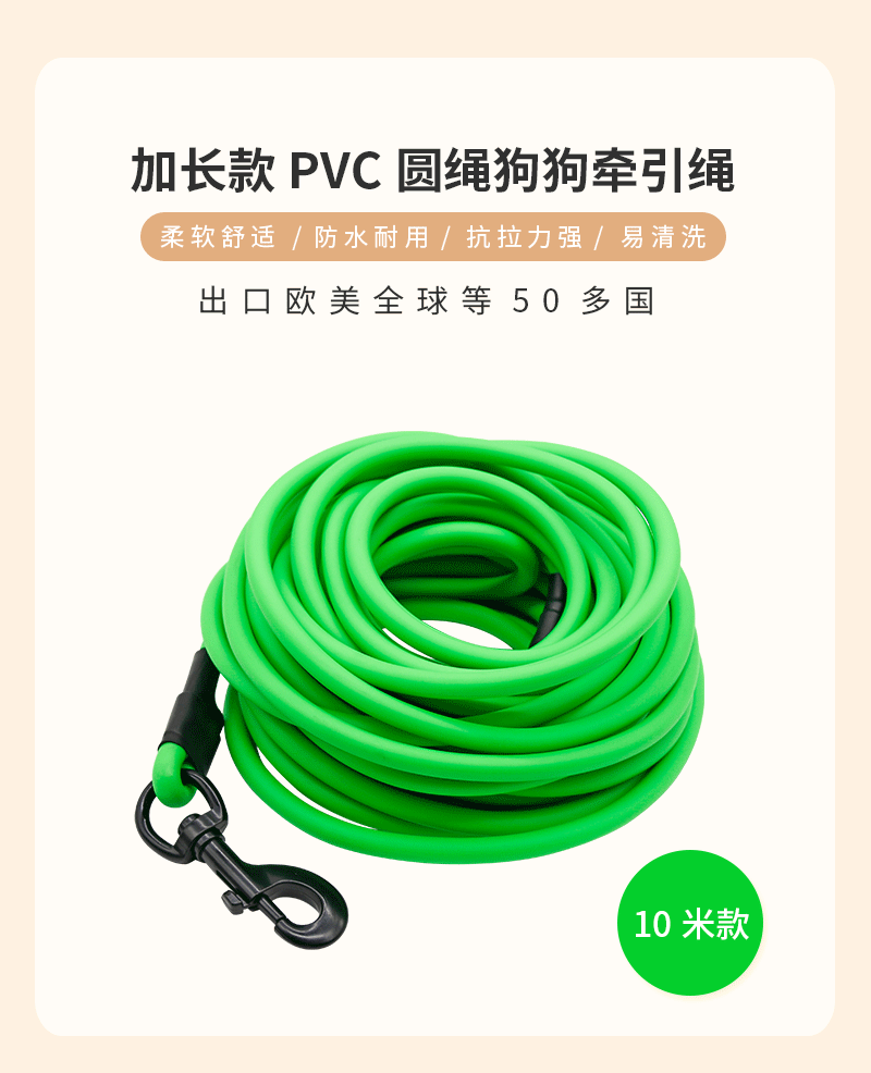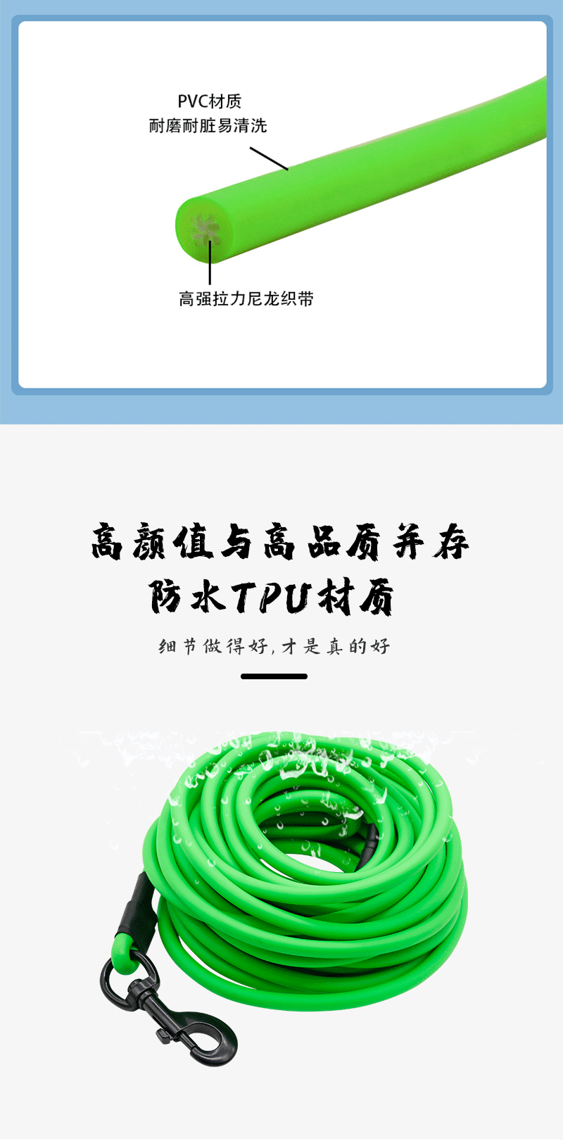 Hot Sale PVC round Hand Holding Rope Waterproof Antifouling Long Dog Leash Tensile Abrasion Resistant Pet Chain Source Factory