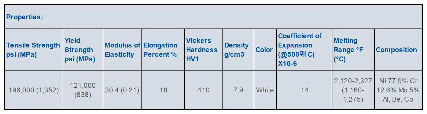 VeraBond possesses unsurpassed melting and casting fluidity for sharp, delicate margins and consistently reliable castings. The combined yield strength (838 MPa) and a hardness rating of 410 Vickers produces tremendous resistance to clinical wear and deformation. Superior mechanical strength permits the design of thin wall copings and thin interproximal connec- tions; greater strength without bulk.