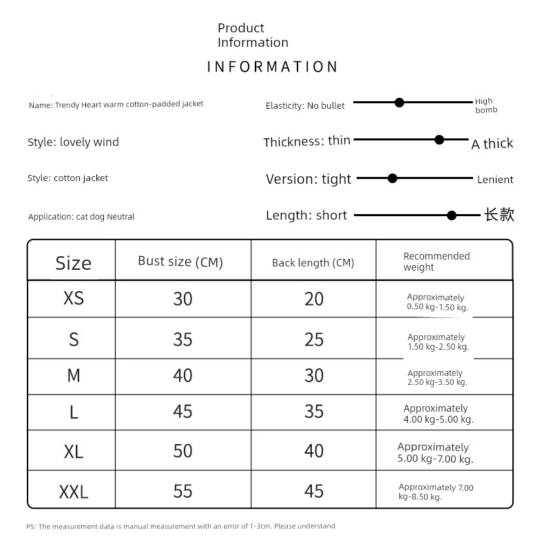 Size: M Suggested 2.50 kg-3.50 kg specific reference size table