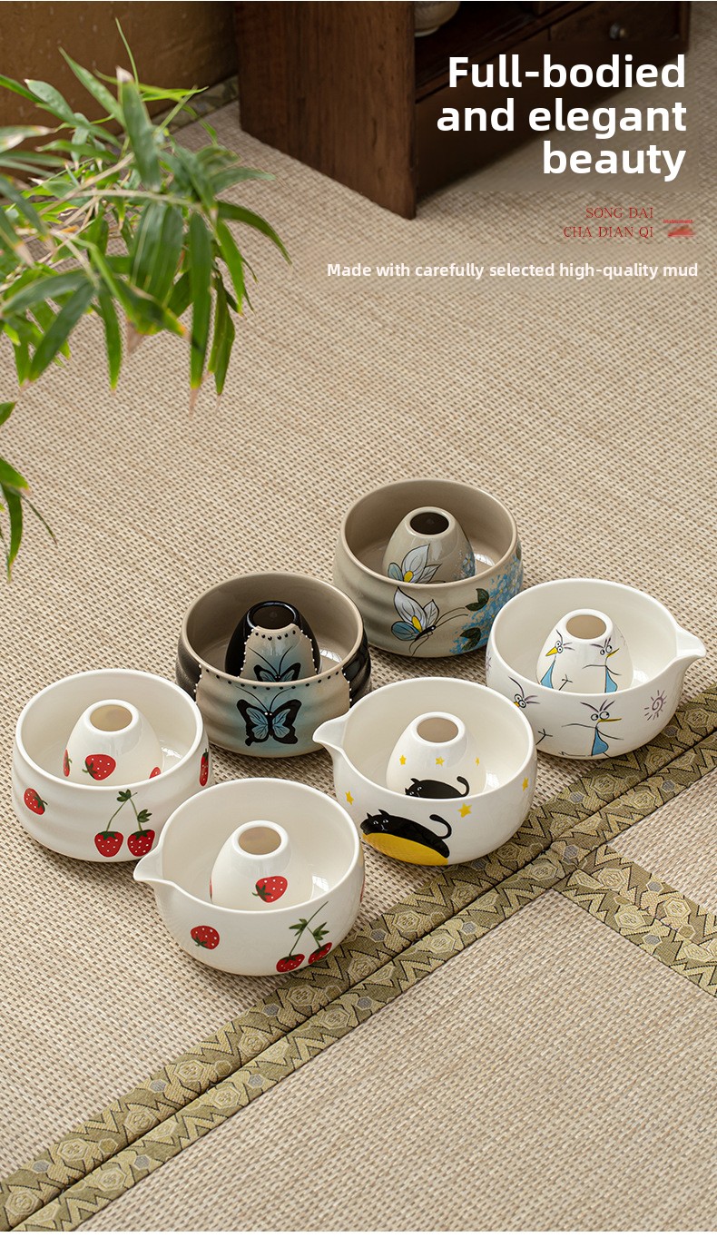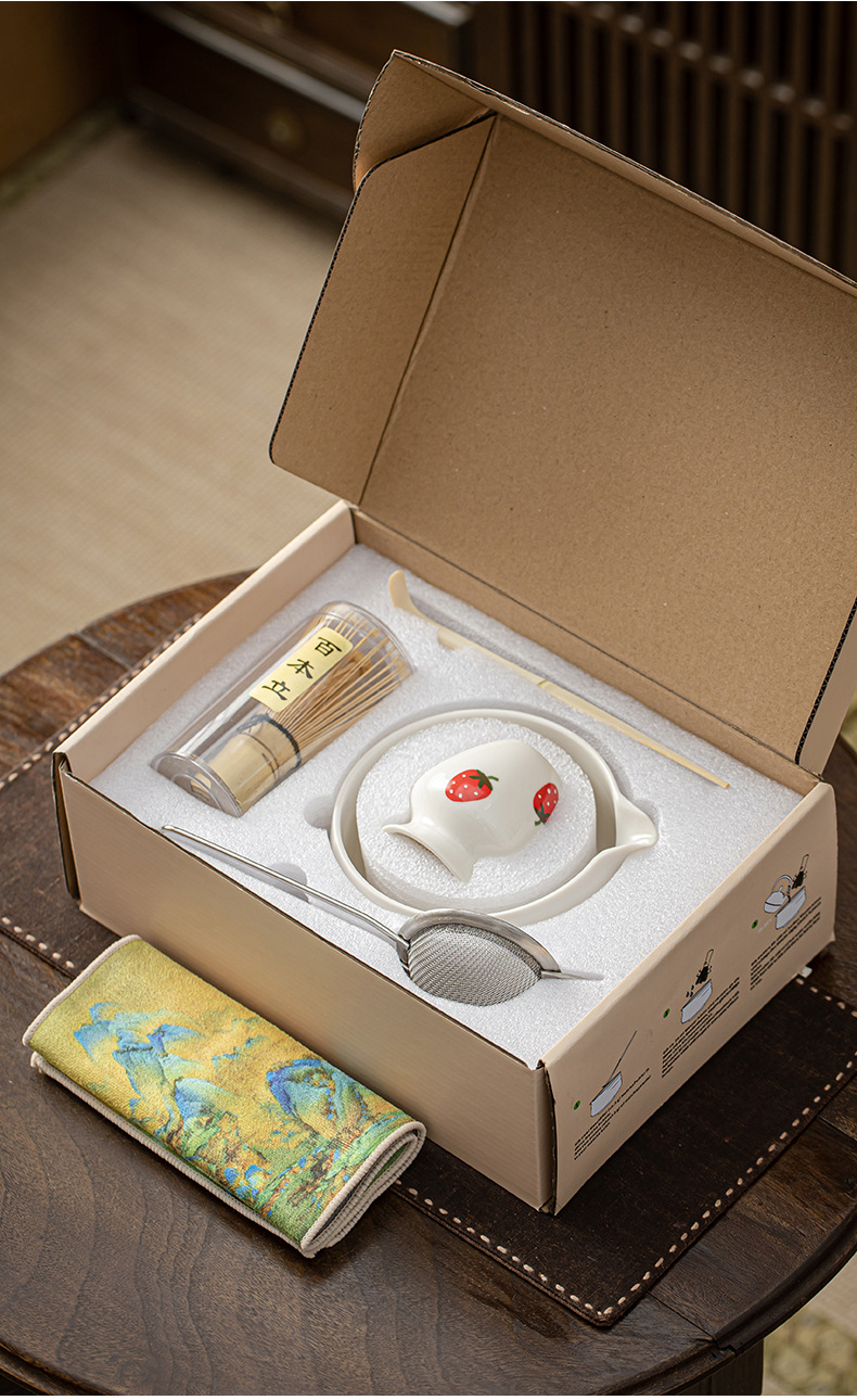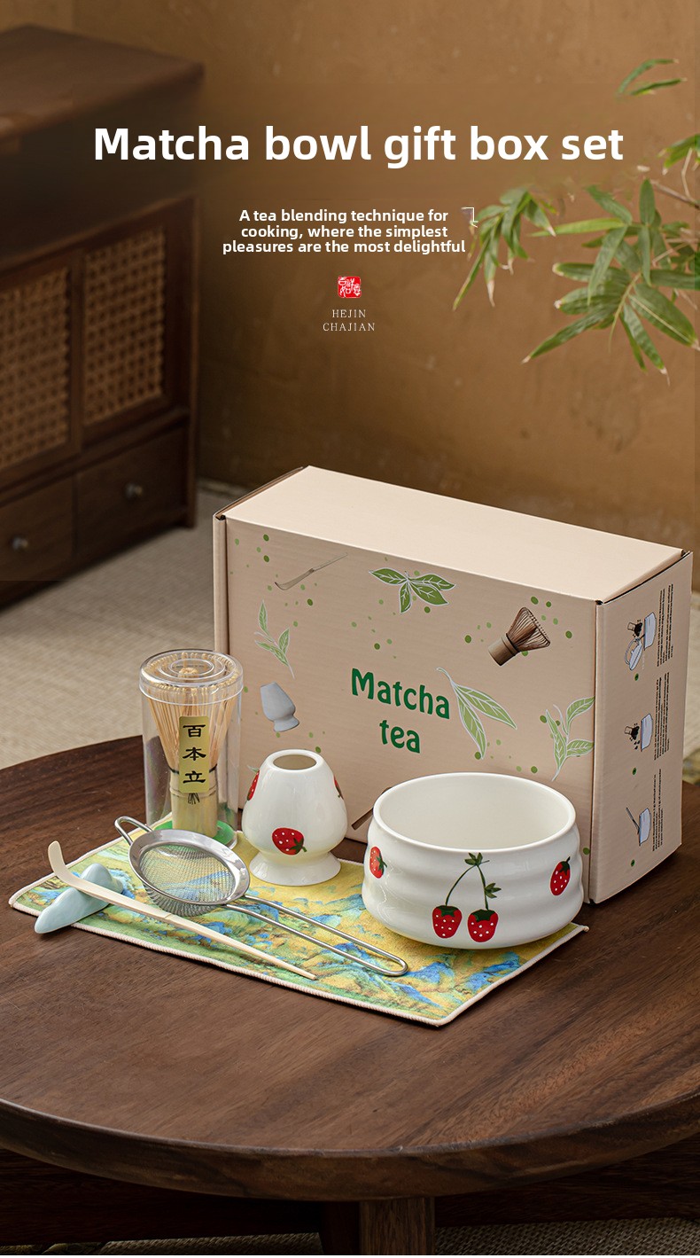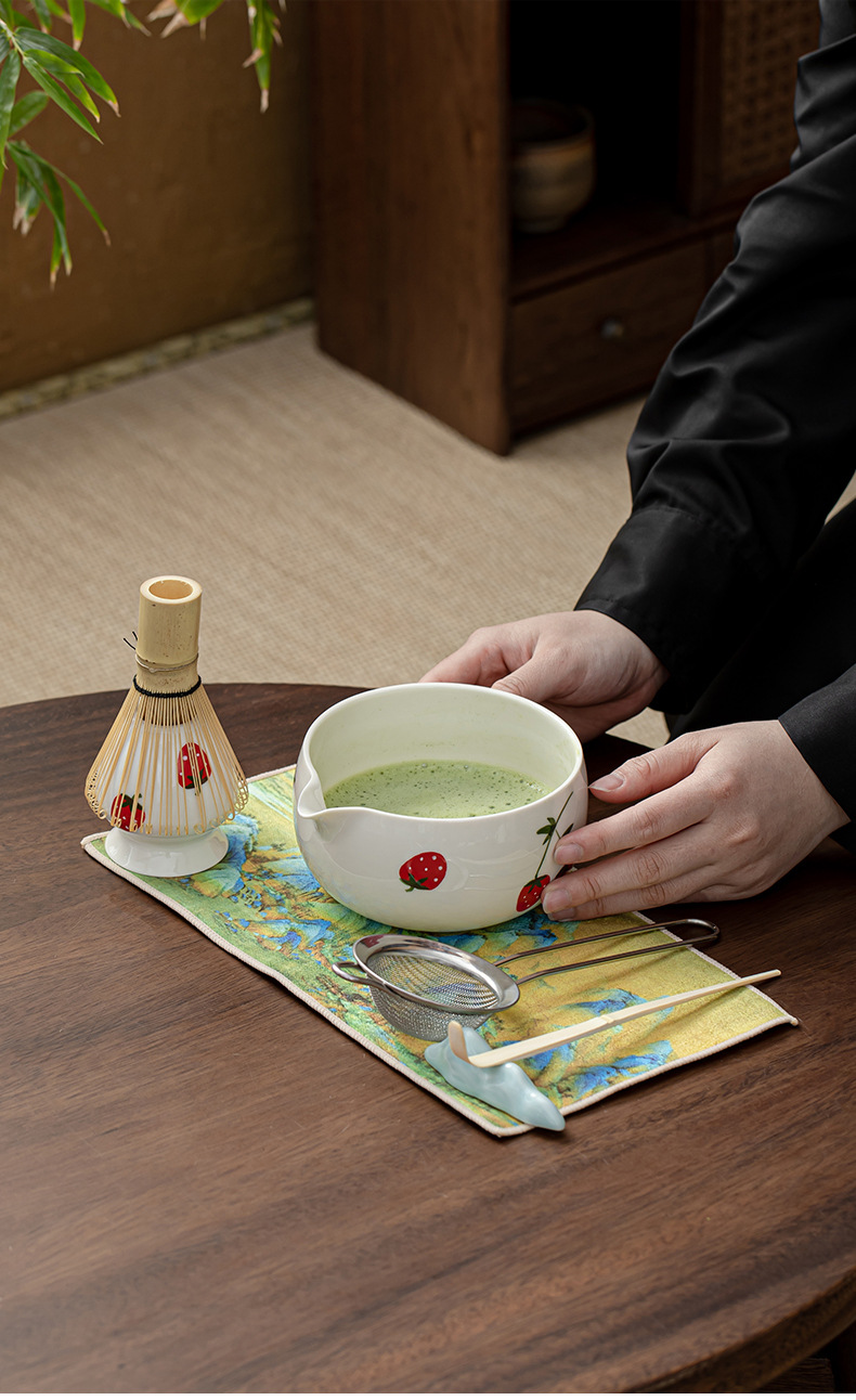 Hand-painted Matcha Tea Whisk Set with Ceramic Bowl