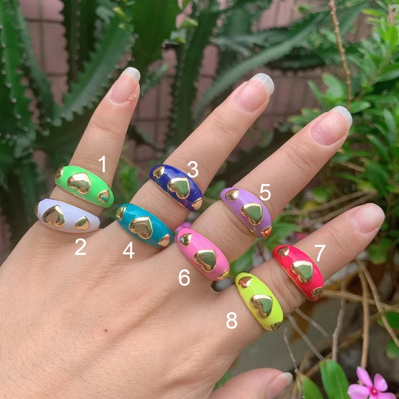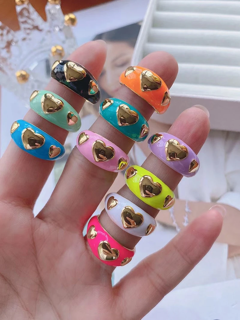 Heart Enamel Ring, Neon Pink Orange Turquoise Blue Pendant Oil Dropped, Sweet Romantic Party Jewelry Wholesale P33