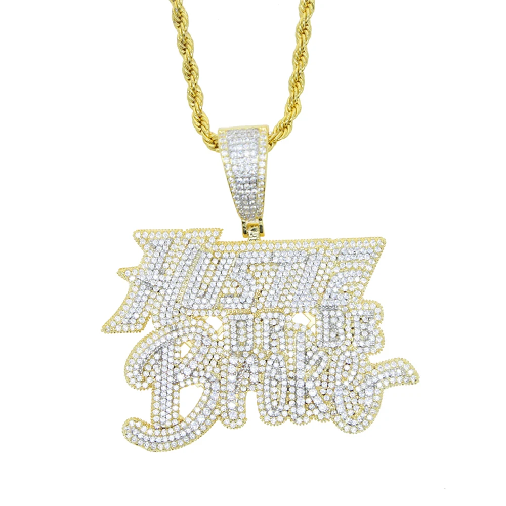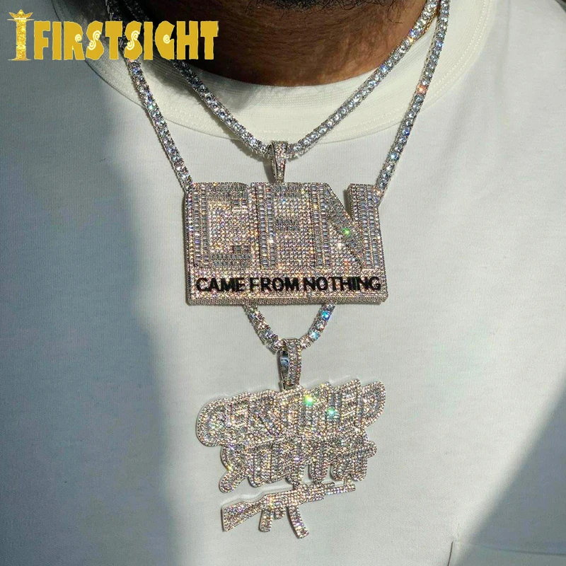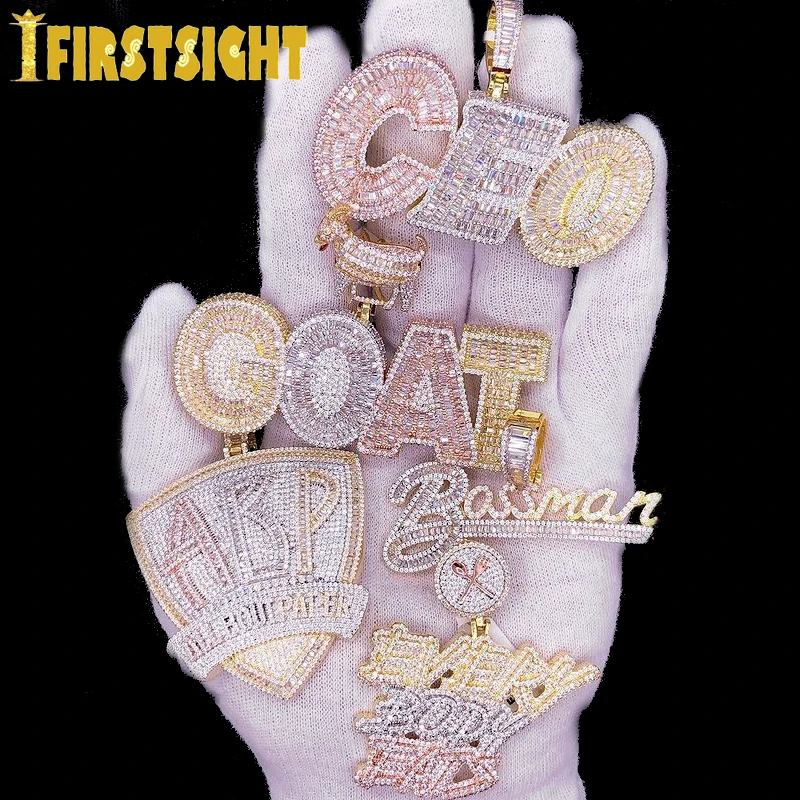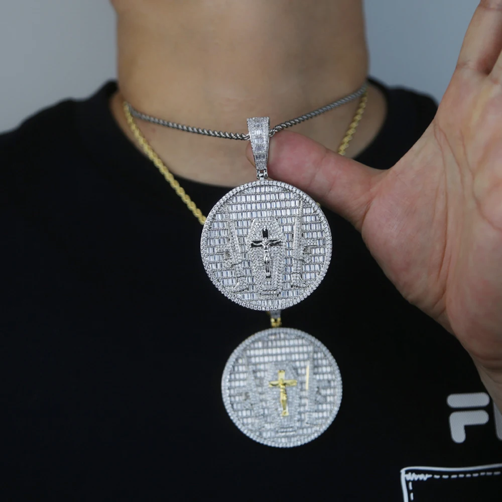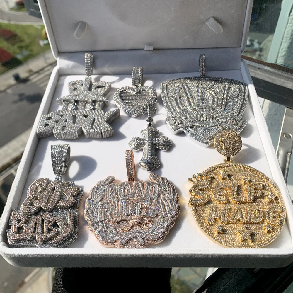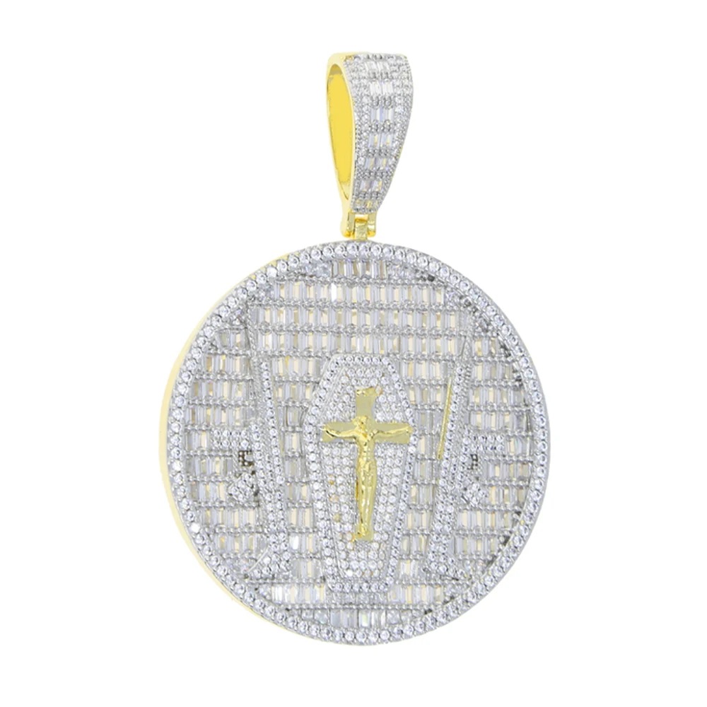 New Iced Out Bling CZ Letter Cross Pendant Necklace Various Design 5A Zircon Two Tone Color Badge Charm Men's Hip Hop Jewelry