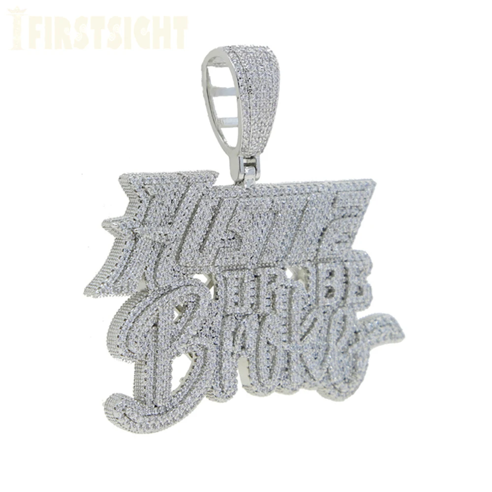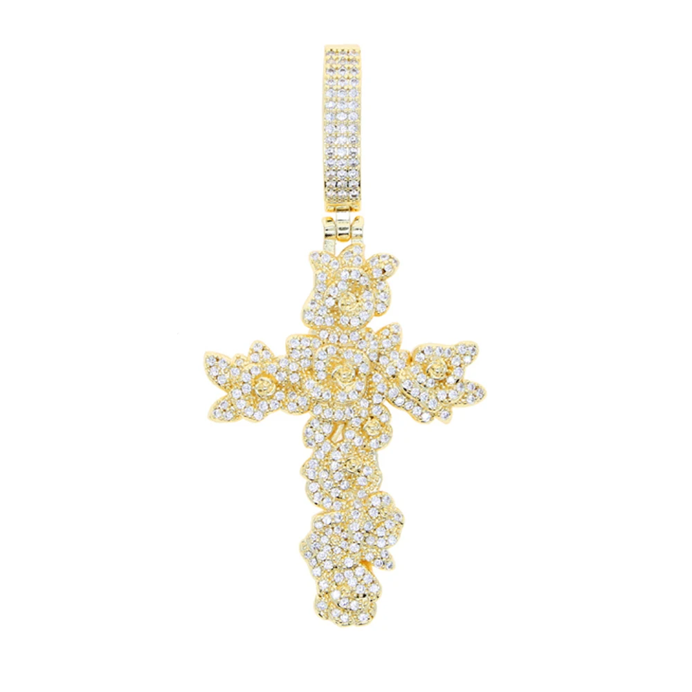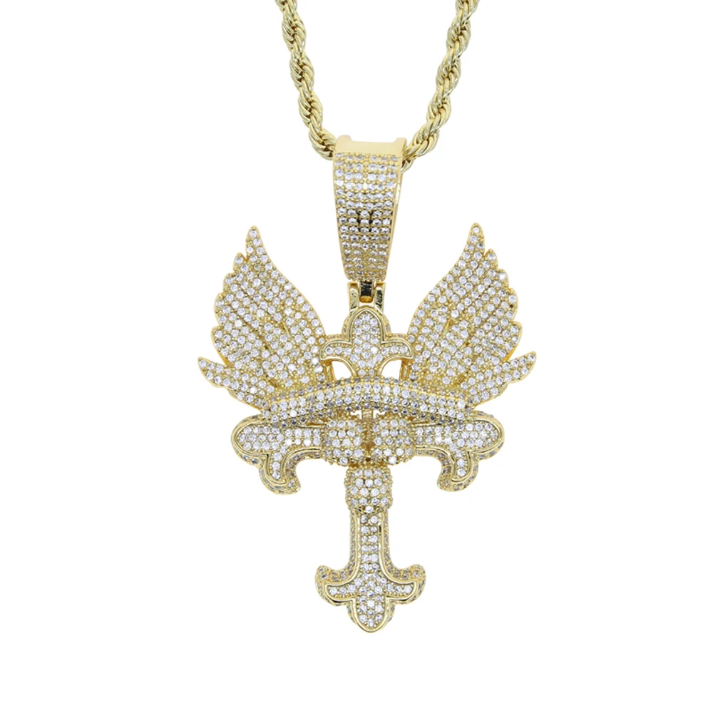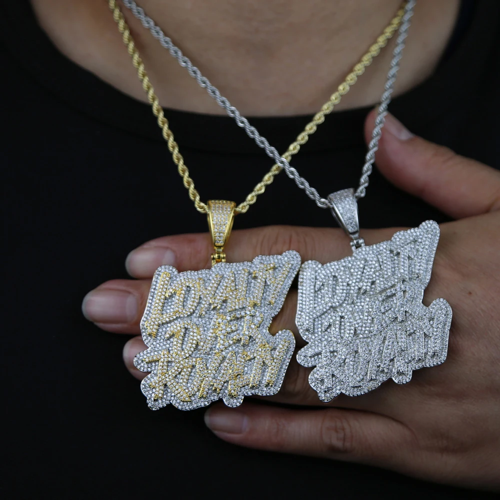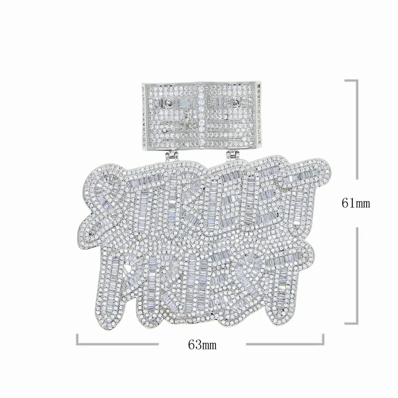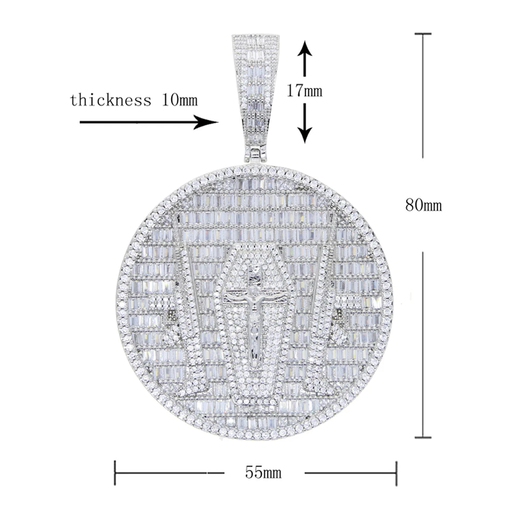 New Iced Out Bling CZ Letter Cross Pendant Necklace Various Design 5A Zircon Two Tone Color Badge Charm Men's Hip Hop Jewelry