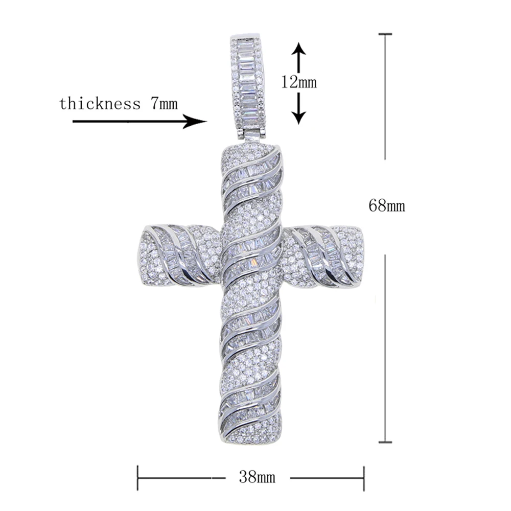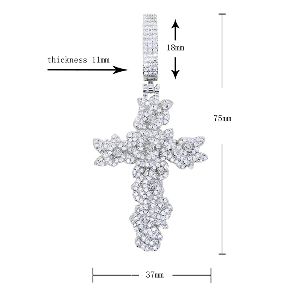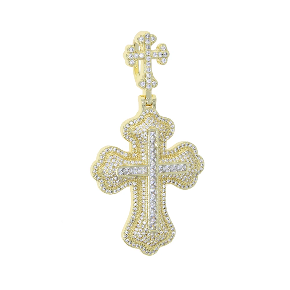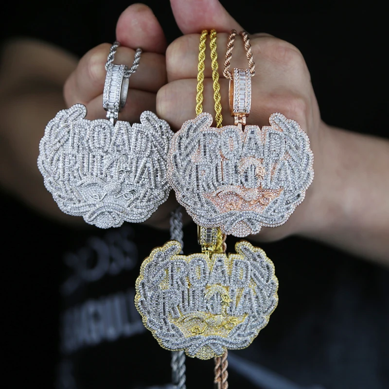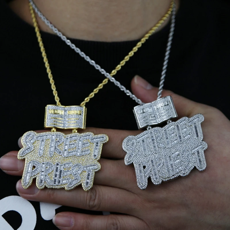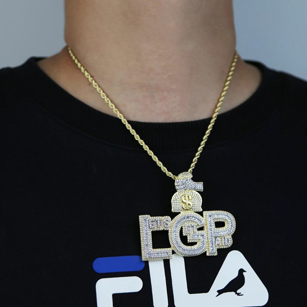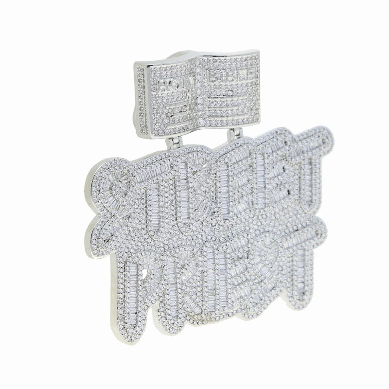 New Iced Out Bling CZ Letter Cross Pendant Necklace Various Design 5A Zircon Two Tone Color Badge Charm Men's Hip Hop Jewelry