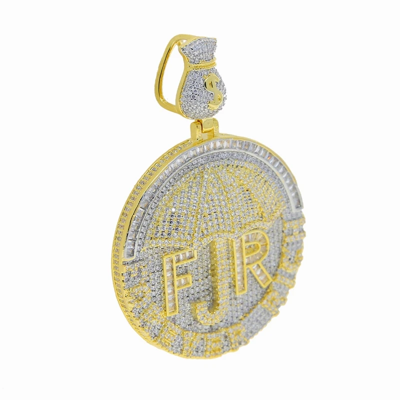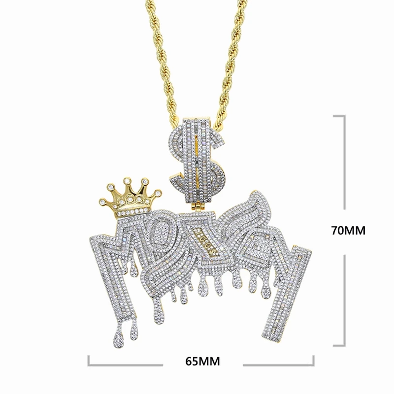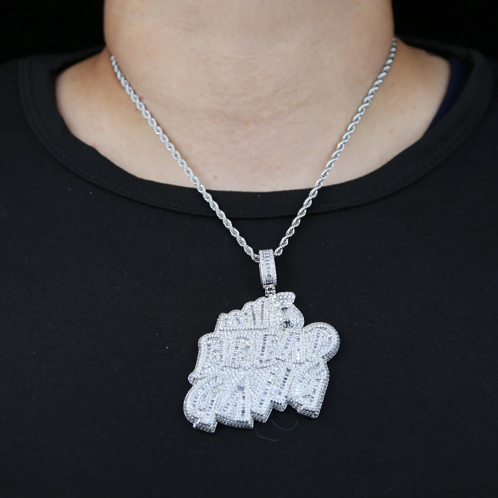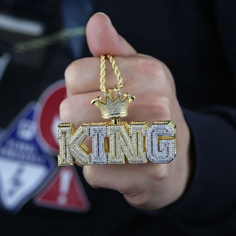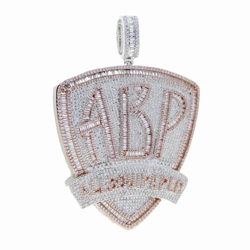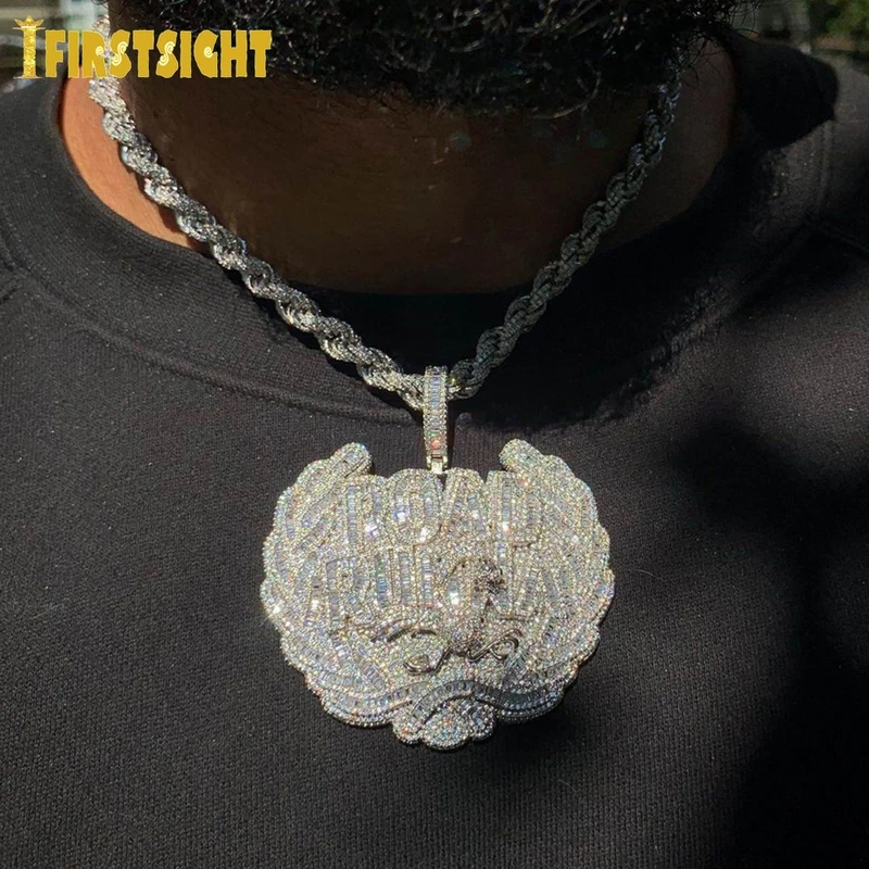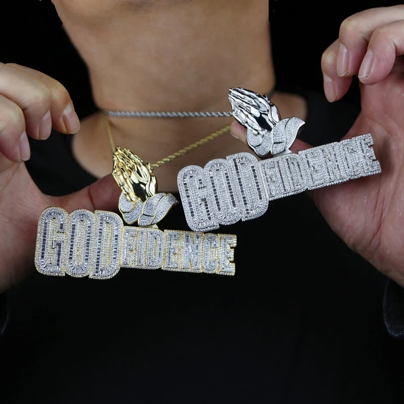 New Iced Out Bling CZ Letter Cross Pendant Necklace Various Design 5A Zircon Two Tone Color Badge Charm Men's Hip Hop Jewelry