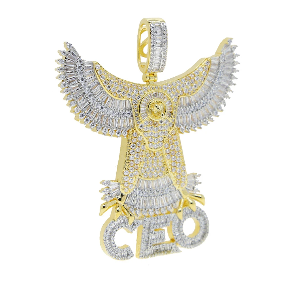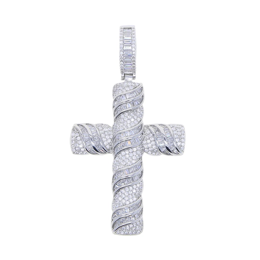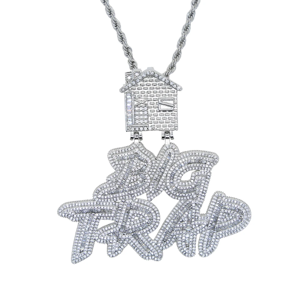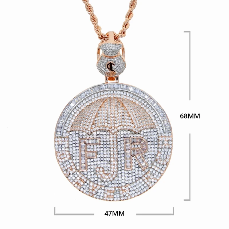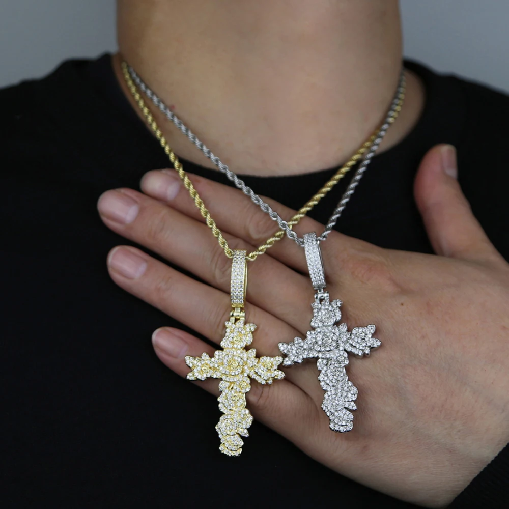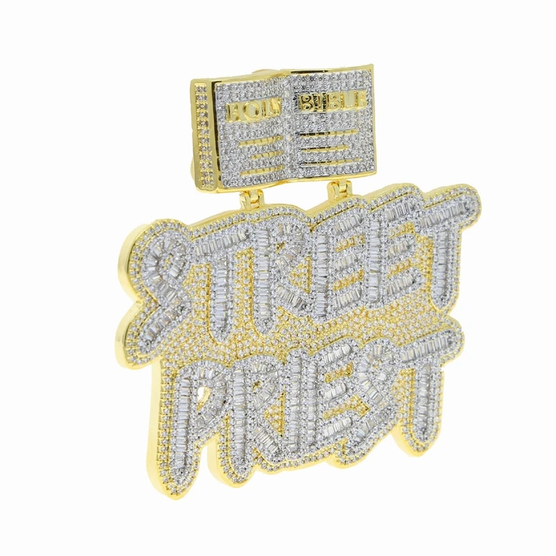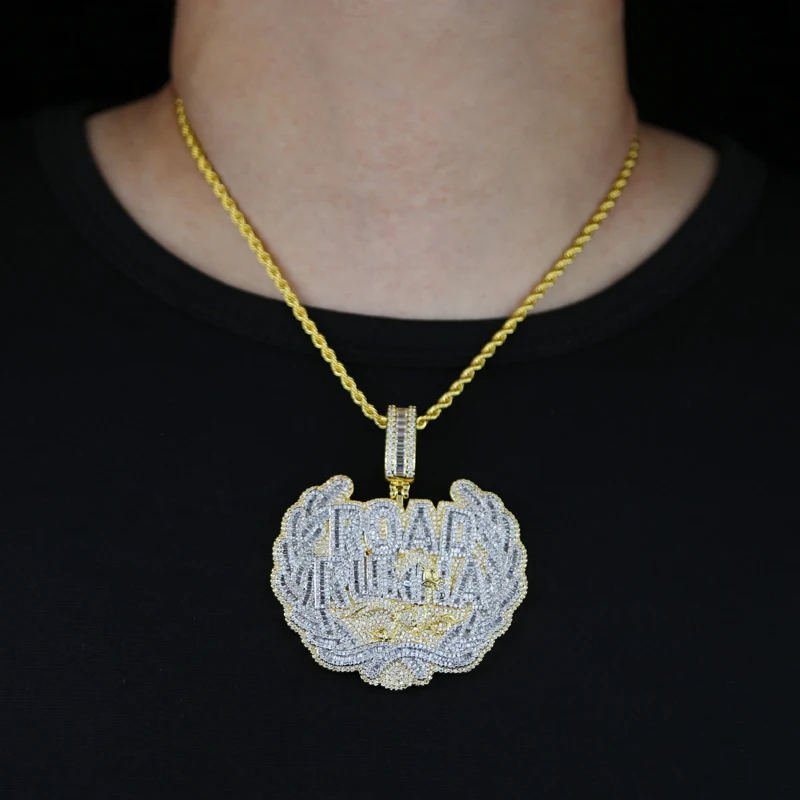 New Iced Out Bling CZ Letter Cross Pendant Necklace Various Design 5A Zircon Two Tone Color Badge Charm Men's Hip Hop Jewelry