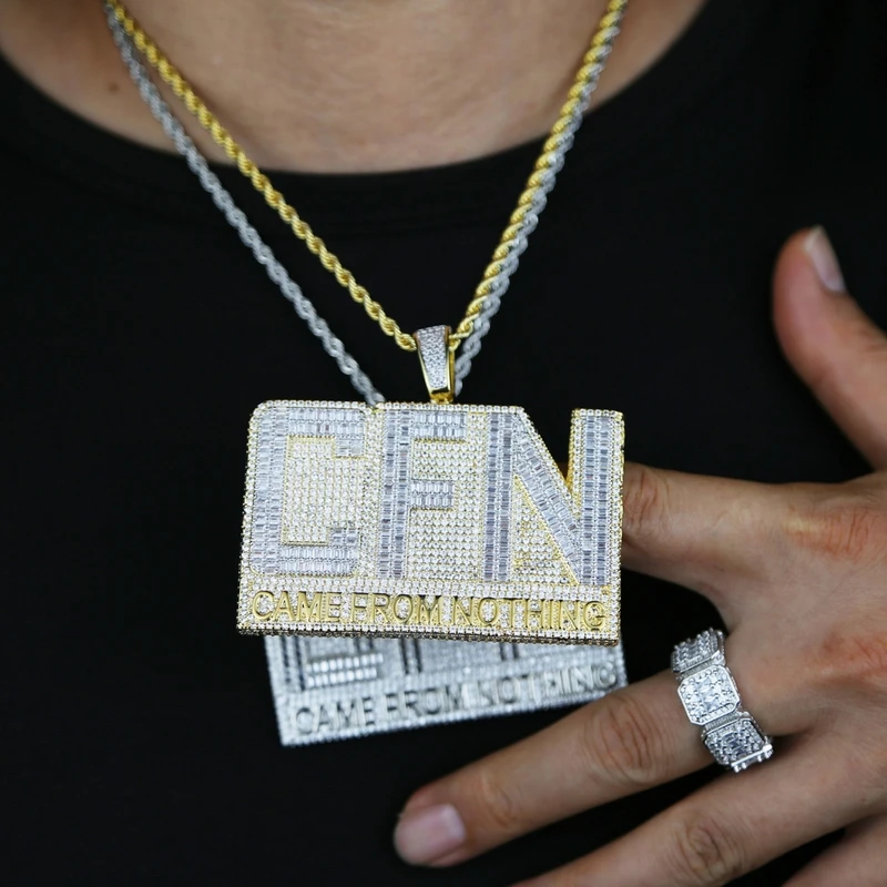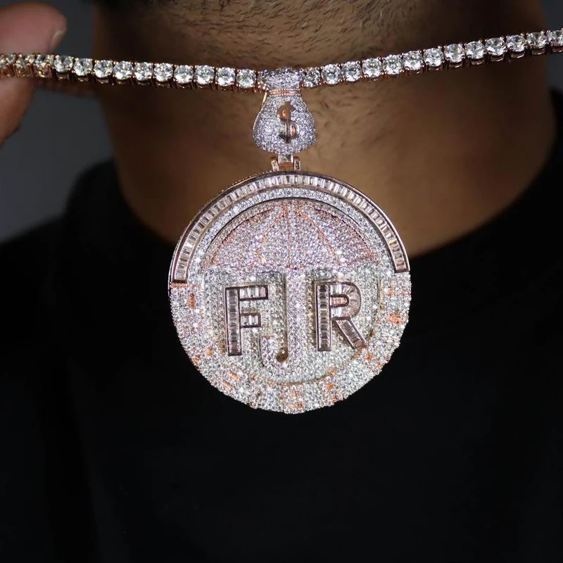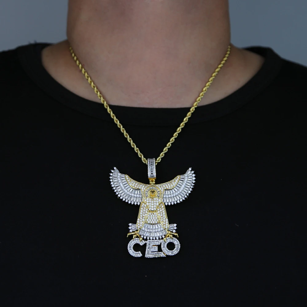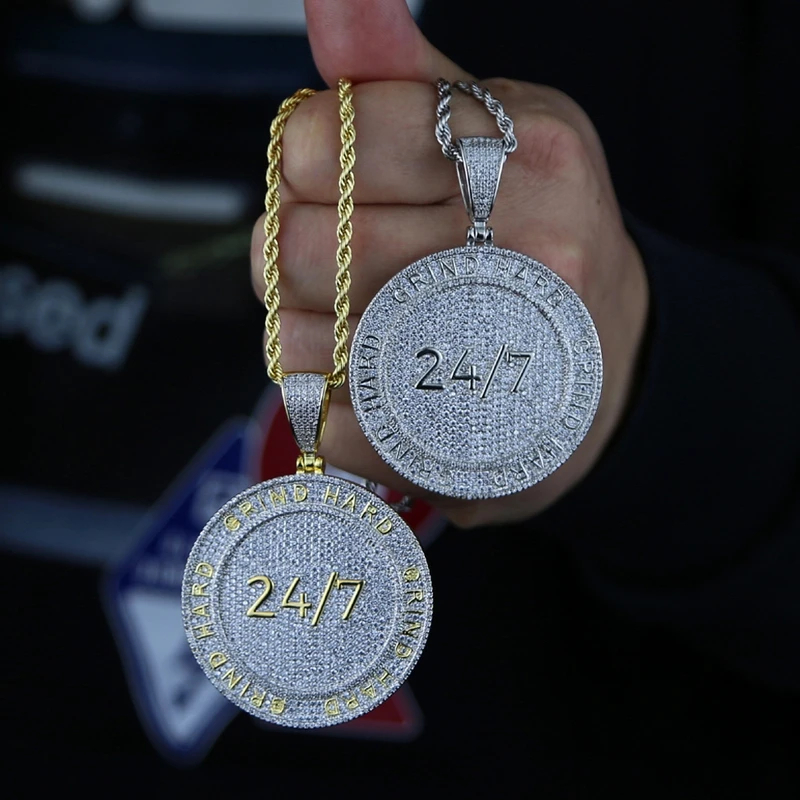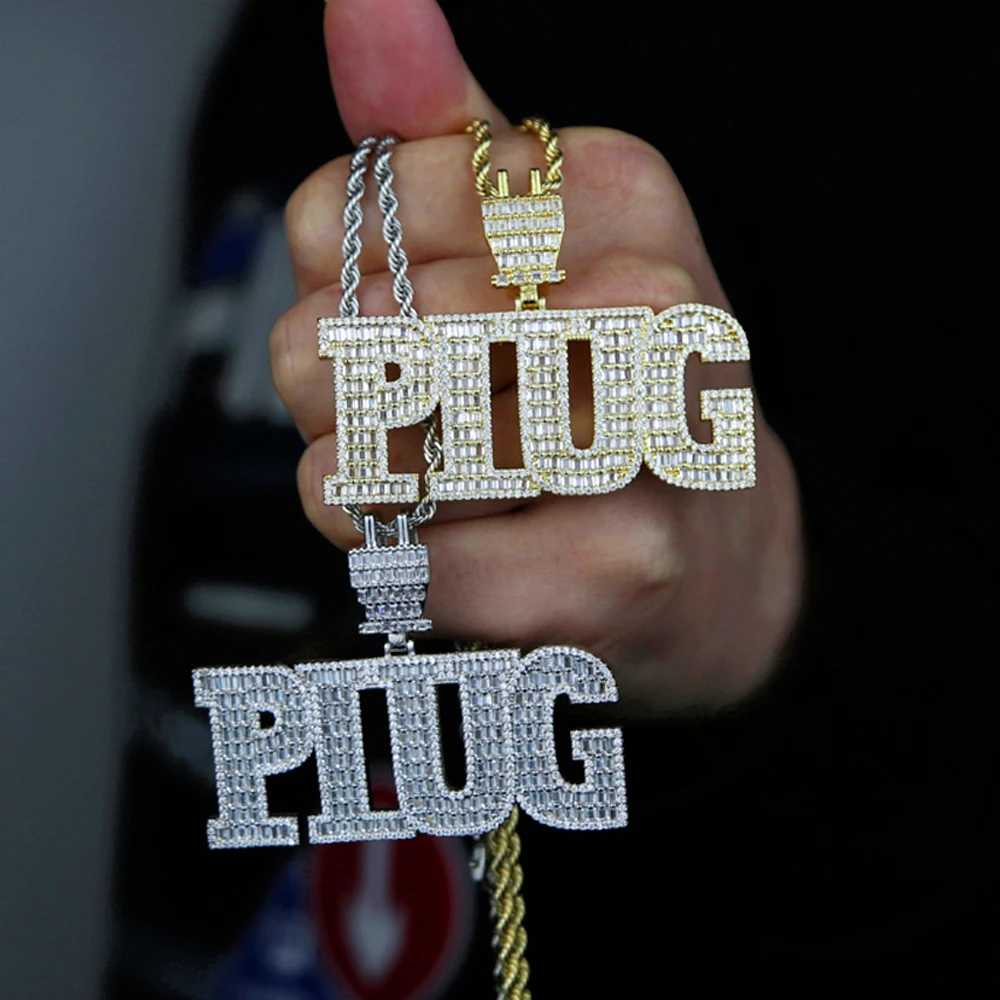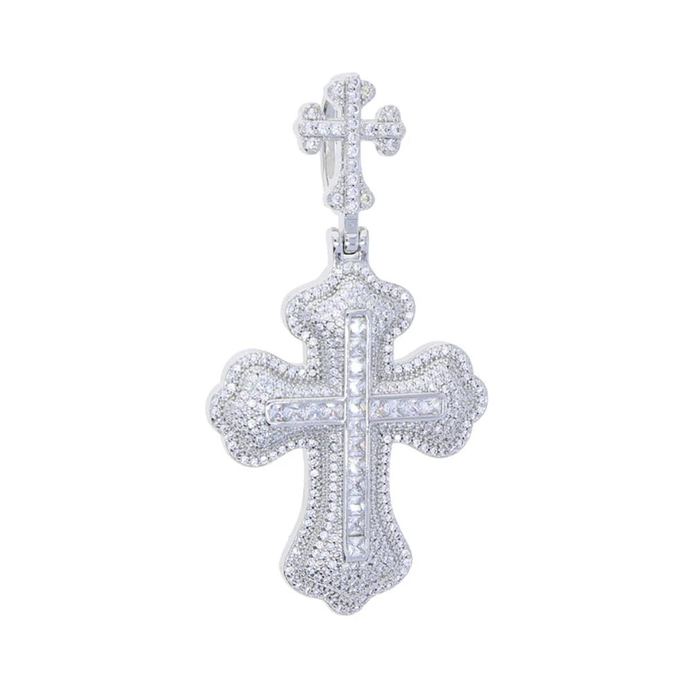 New Iced Out Bling CZ Letter Cross Pendant Necklace Various Design 5A Zircon Two Tone Color Badge Charm Men's Hip Hop Jewelry